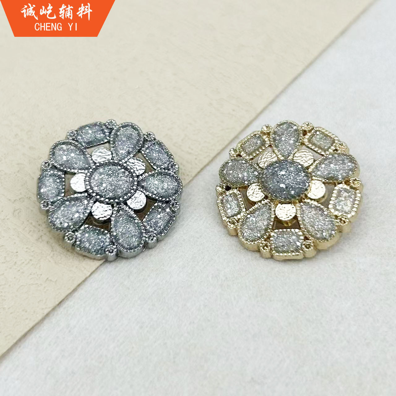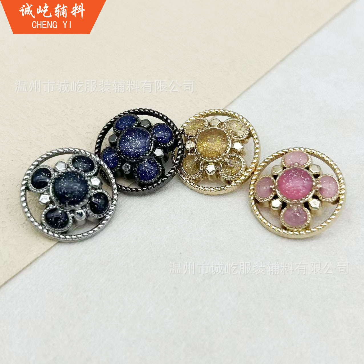高品質の小さい香りの風の円形の透かし彫りの金属の滴のゴムはボタンのセーターのニットの粗い花のコートのボタンを飾ります。