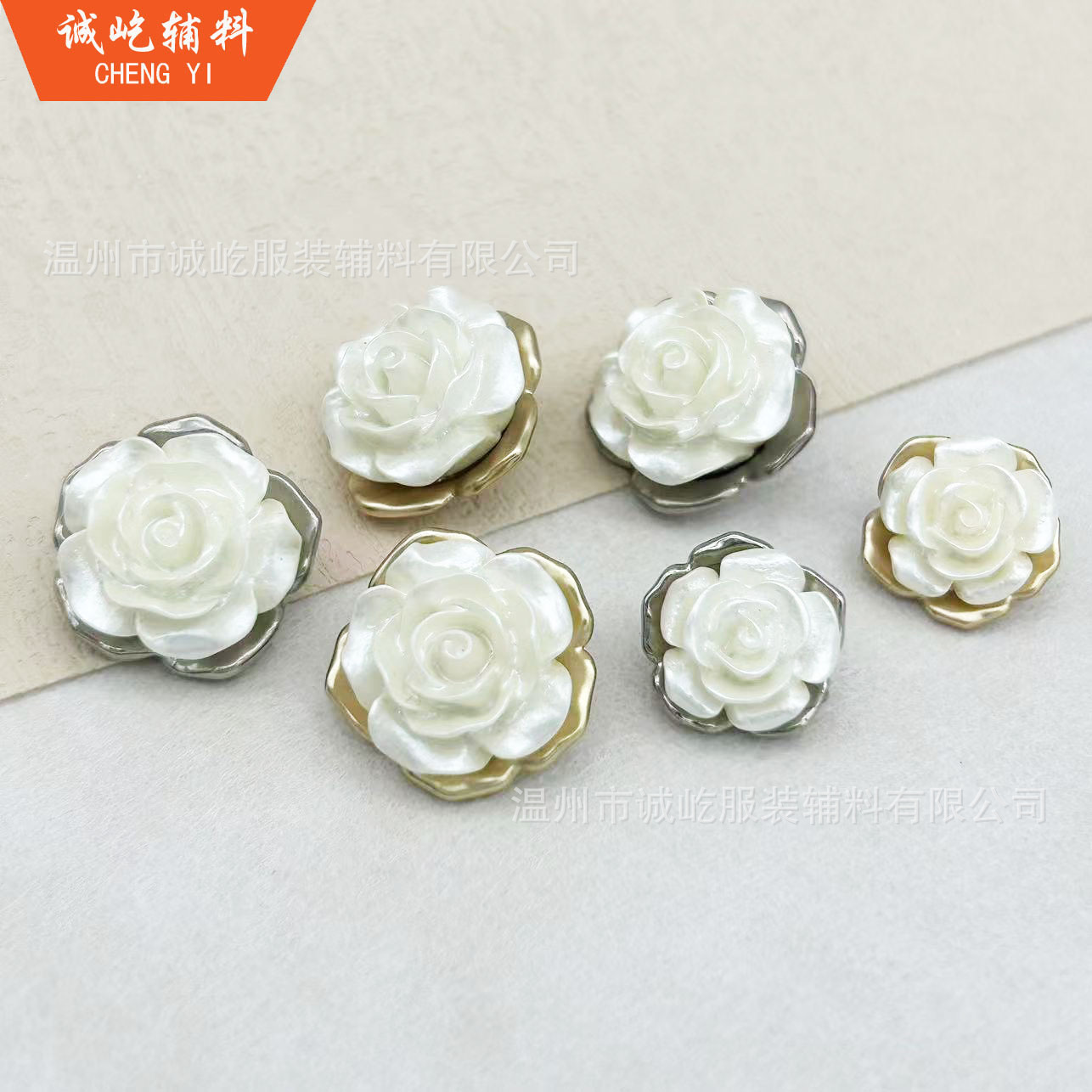 小香名媛風白いバラのボタンの女性の上着のセーターのニットのコートの装飾のボタンの卸売り