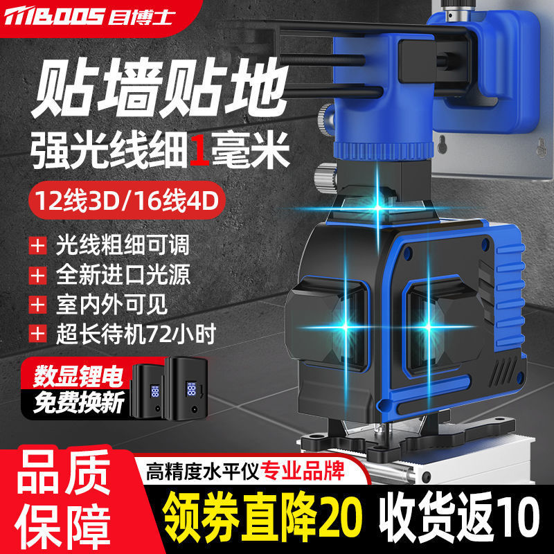 Dr. Mu 12ライングリーンライトレベルメーター、強力な光フロアメーター、超大型リチウム電池、長寿命レーザー赤外線壁掛けメーター