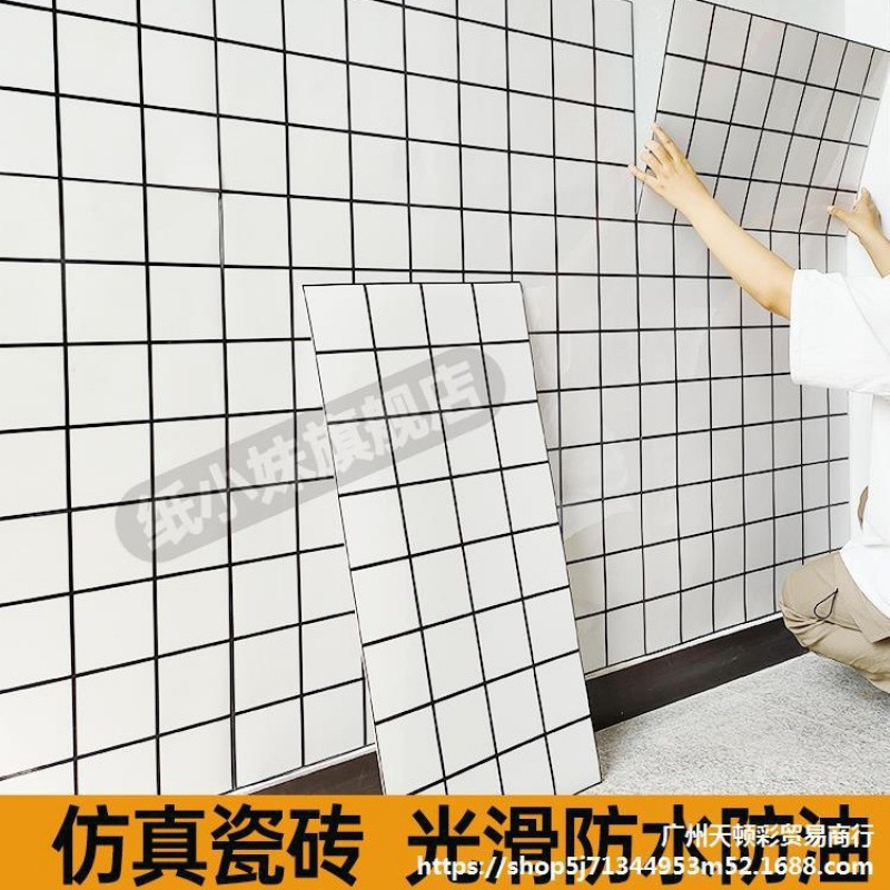 模造タイルの壁に自己接着pvcアルミ板の硬い板の格子の台所の防油シールの壁のスカートの壁の板の装飾板を貼ります。