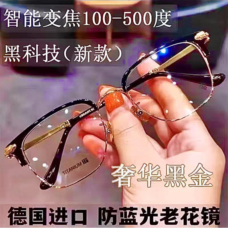スマート老眼鏡自動調節度数ズーム遠近両用ハイビジョンブルーライト多焦点高齢者メガネ