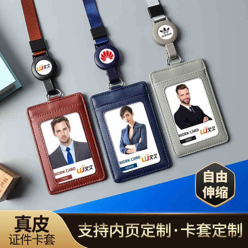 本革作業証カードカバー従業員工牌胸牌本革カードカバーストラップ付き作業札メーカー札カバー胸牌カードカバー