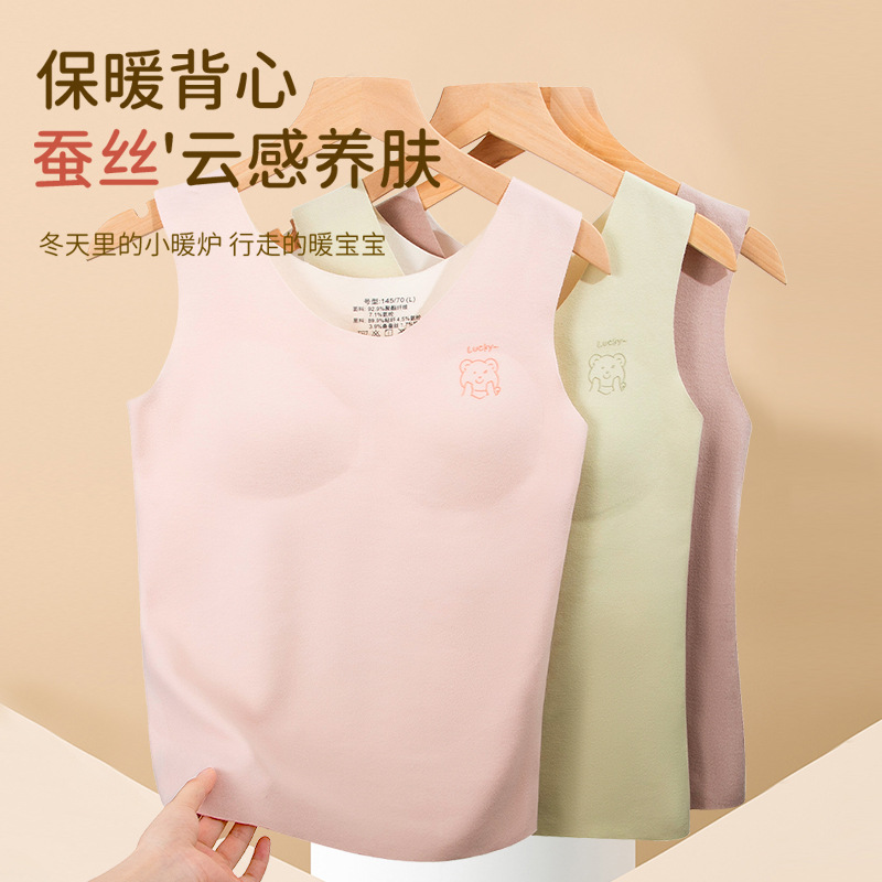 女の子の発育期の保温ベストの中学高校の学生のカシミヤの絹糸は腹の馬甲の子供の下着のブラジャーを保護します。