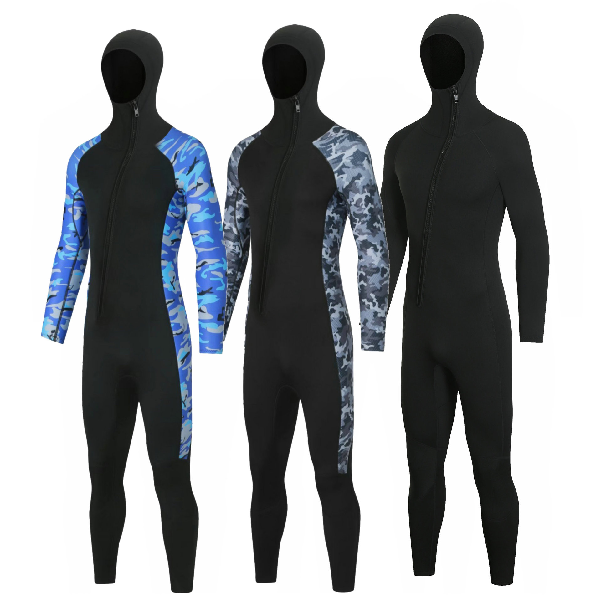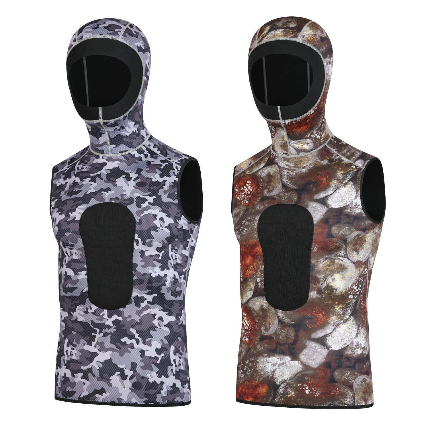 3mmダイビング暖かい迷彩帽子付きウェットスーツノースリーブダイビングベストウェットスーツ水泳サーフィンスーツ