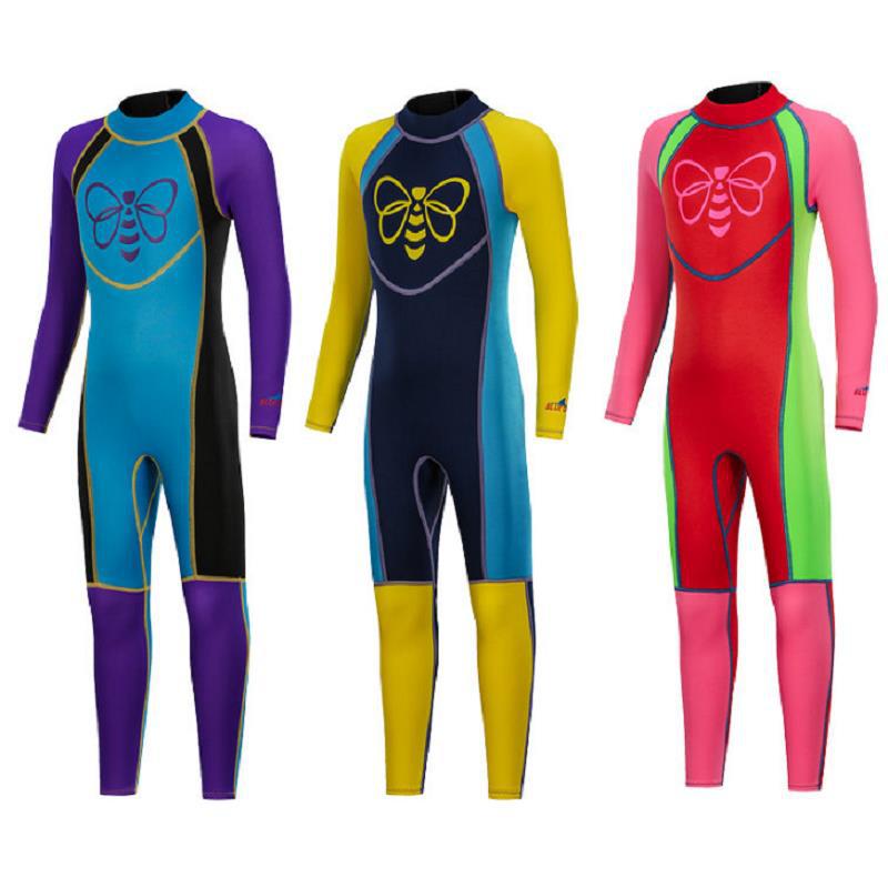 子供水着2mm冬厚手防寒保温女の子男の子ワンピース長袖保温水着ウェットスーツ