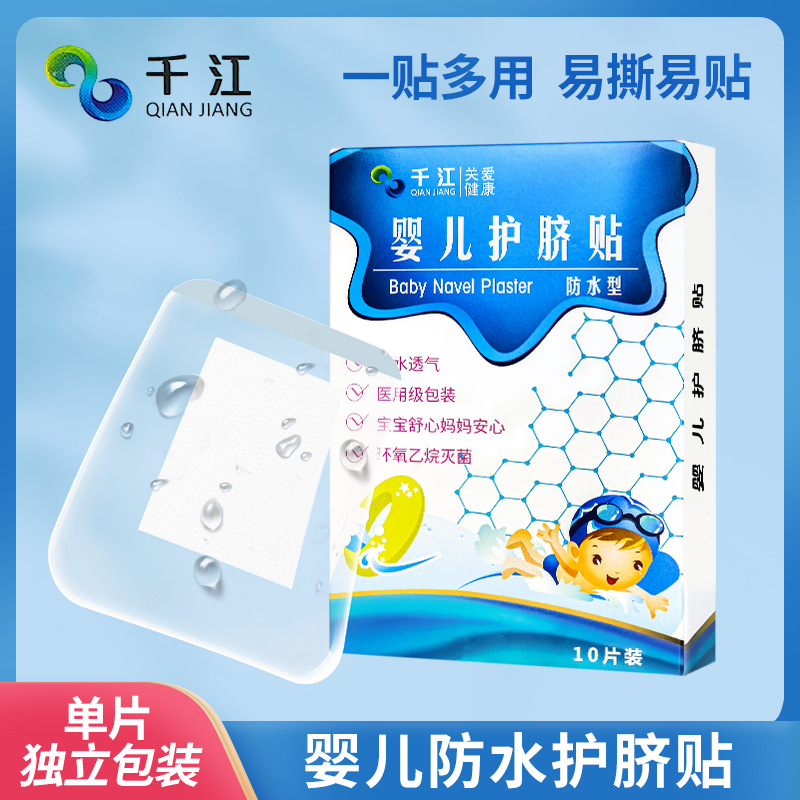 千江の赤ちゃんのへそを保護して10枚の水泳をつけてお風呂に入ります。乳幼児の防水を貼ってへそを保護します。