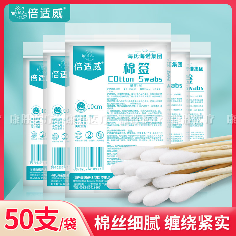 倍適威綿棒化粧単頭綿棒使い捨て木棒棒棒10cm綿棒50本入り