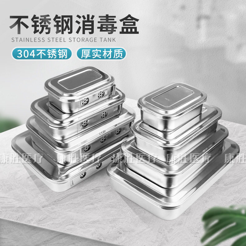 ステンレス消毒盤穴なし蓋付き消毒箱四角い盤トレー医療器具盤304