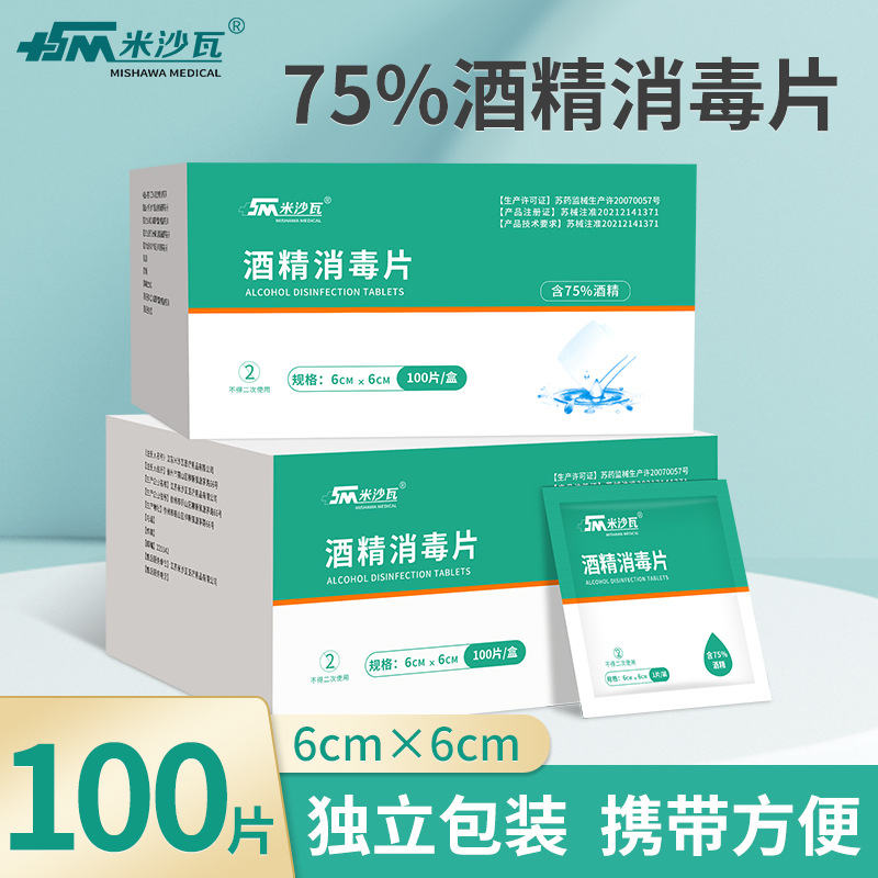 ミサワアルコール消毒綿片消毒ウェットティッシュ75% アルコール携帯電話画面拭き6cm * 6cm/100枚