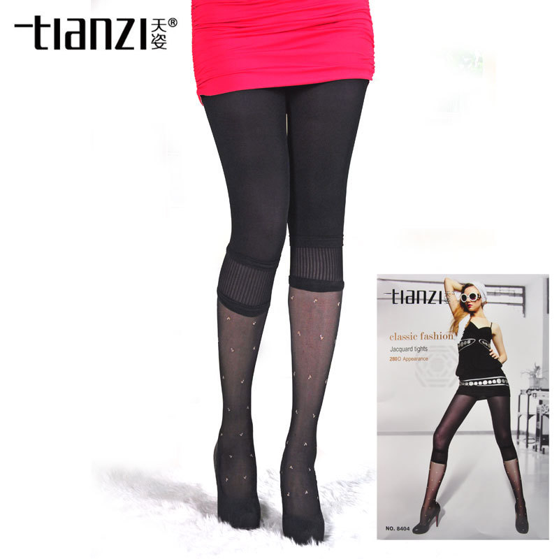 天姿280d偽七分はビロードのジャカードストッキング8404