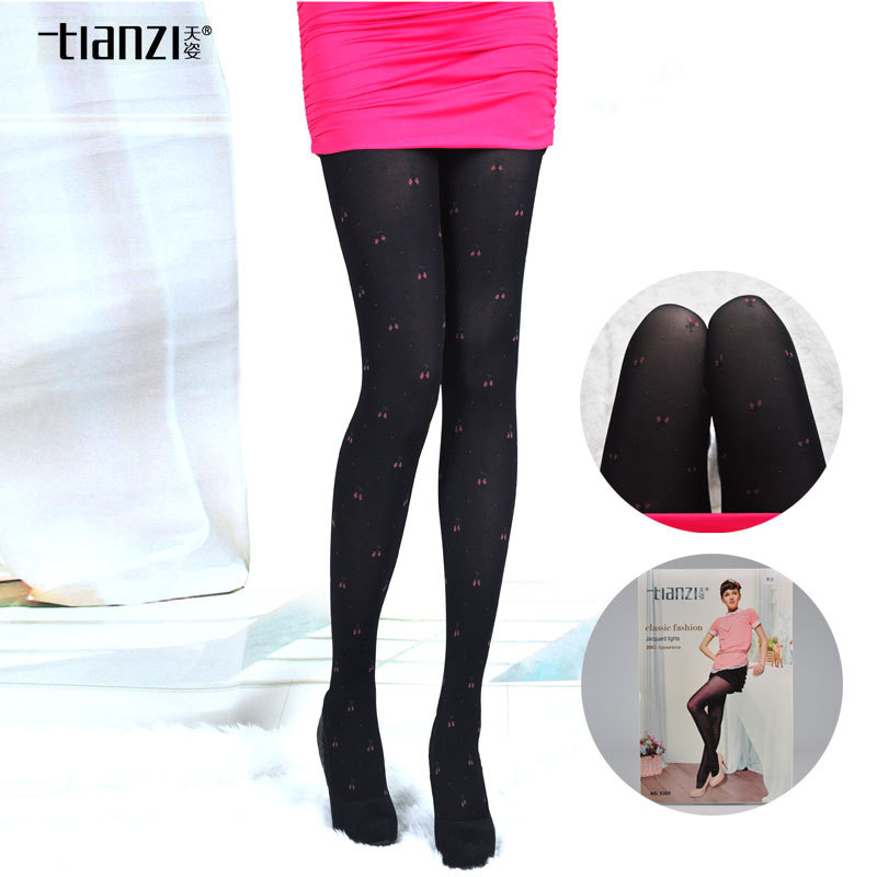 天姿280d中厚不透肉かわいい范児さくらんぼ小緑葉ビロードストッキング6305