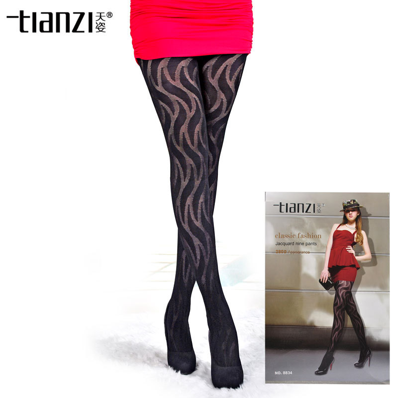 天姿280dストライプ波柳条ジャカードビロードストッキング8834