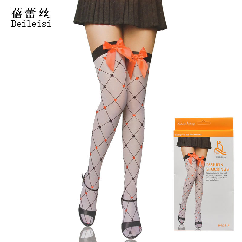 Beileisi蝶結び格子縞ストッキング高筒ストッキング2114