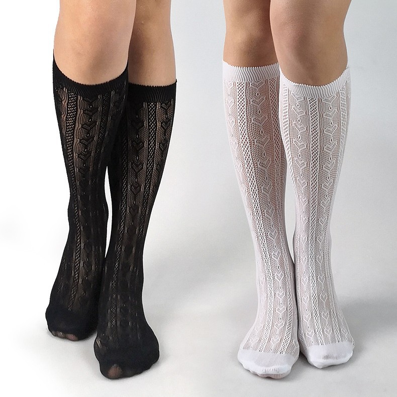 春夏新作愛ジャカード中筒靴下レトロ白黒ストッキングネット靴下