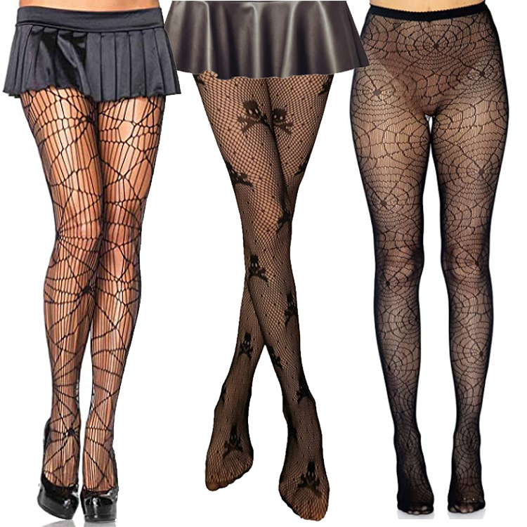 欧米のハロウィンの蜘蛛の網の靴下はズボンの靴下の黒色の大きいスカルの頭の大人の靴下の漁網の靴下の卸売りの鬼節の靴下になります。