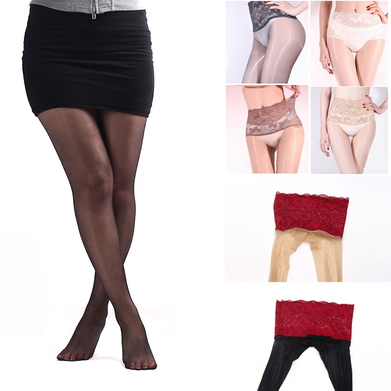 オーロラローウエスト360度シームレスクロッチストッキングオイリーブラックシルクパンスト誘惑レースウエストオイリーパンスト
