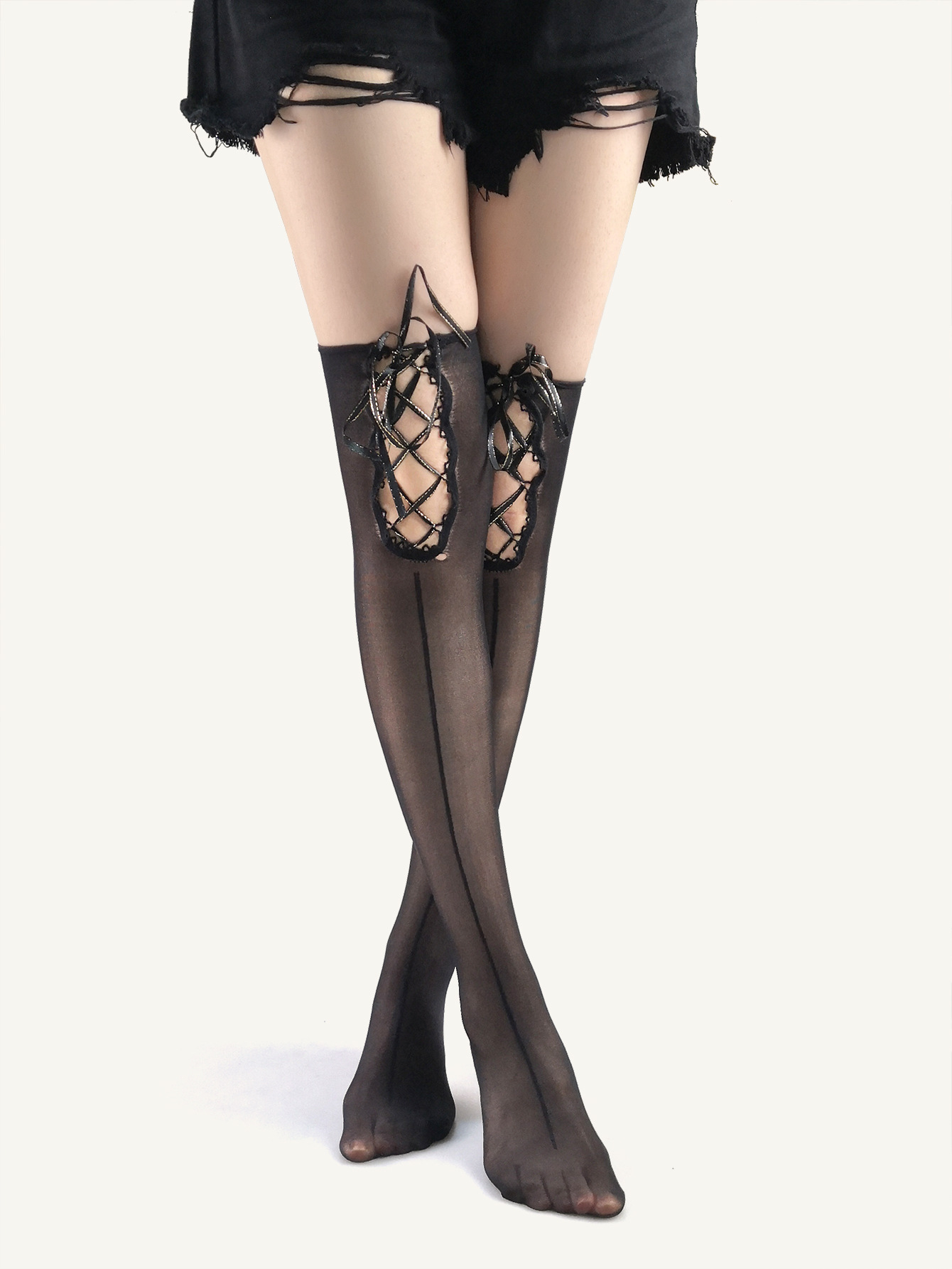 Beileisiセクシーなストラップの縦の長い筒は膝を越えて透かして見えます。痩せていて可愛い女性のストッキング2045