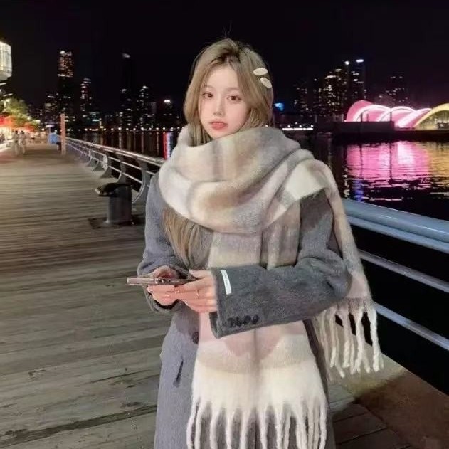 新しい韓国の格子のマフラーの女子学生は冬にかわいい保温防寒防風の首の学院の風を合わせて首を囲みます。
