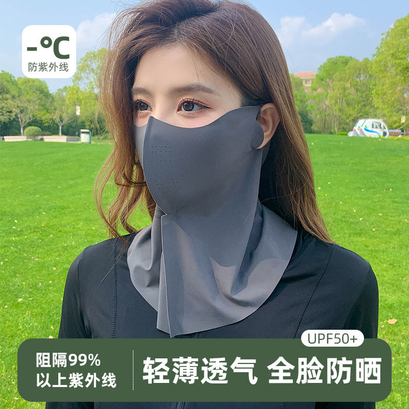 無痕通気孔保護首日焼け止め女性マスク紫外線防止氷糸薄いベール日よけマスク一体目保護