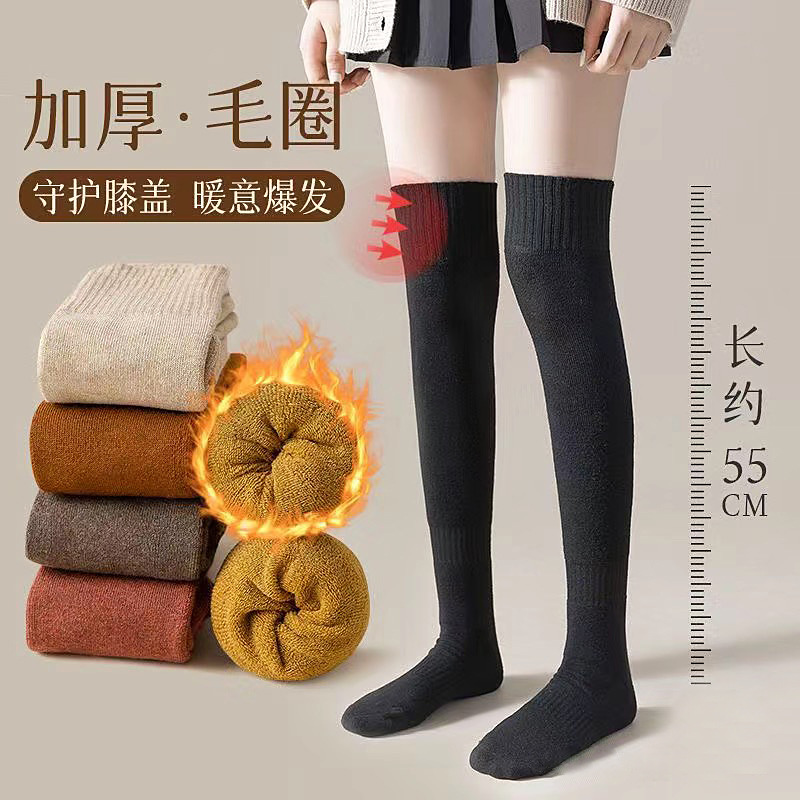 ベルベットの厚いふくらはぎの靴下の女性の純色の毛輪の高い靴下の運動のやせた足の圧力は膝の靴下を越えて毛輪の靴下を厚くします。