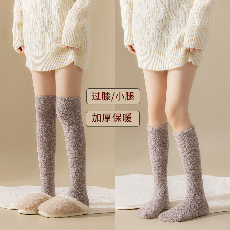 秋の冬のサンゴの絨毛の下腿の靴下の子供の家の床の靴下とベルベットの厚い保温の膝のストッキングの睡眠の靴下