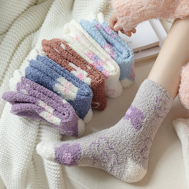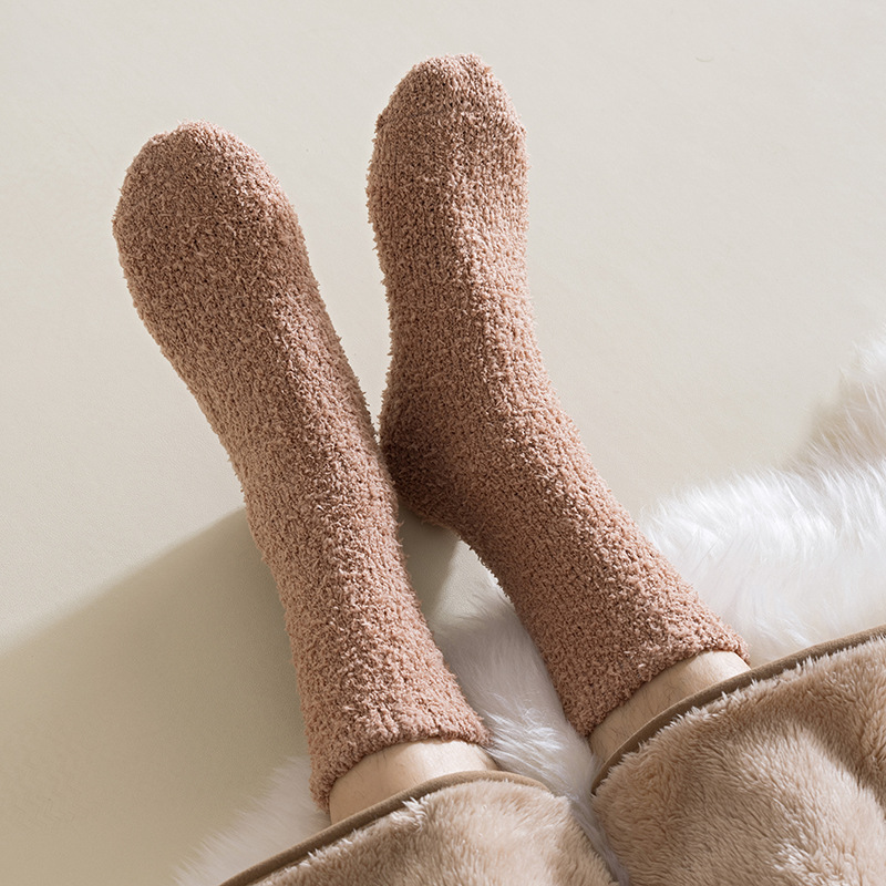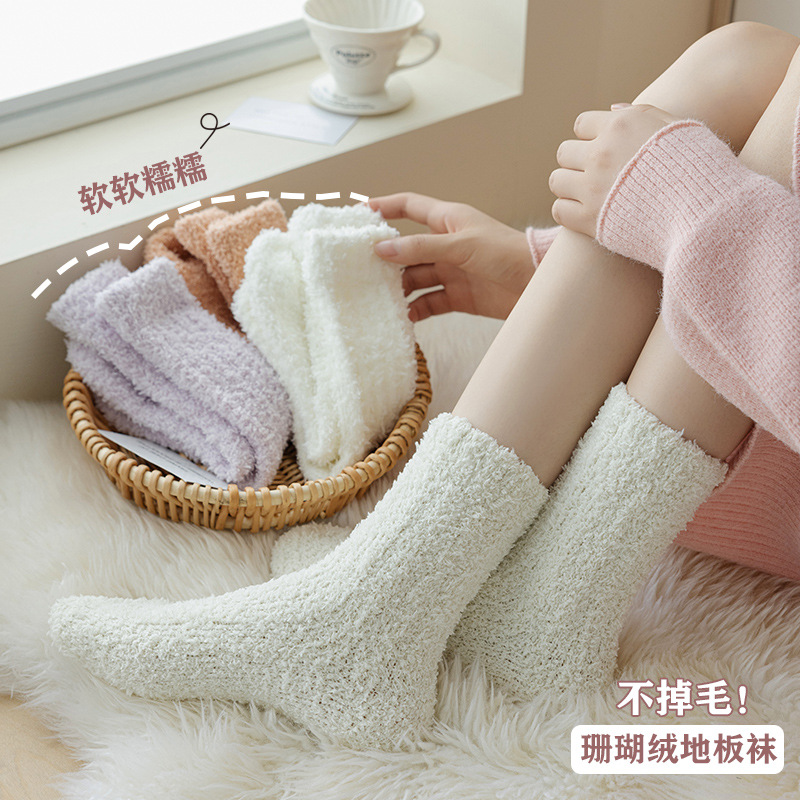 サンゴの靴下の女性はベルベットを厚くして秋冬に毛を落とさない産後月子靴下の床靴下保温中筒睡眠靴下
