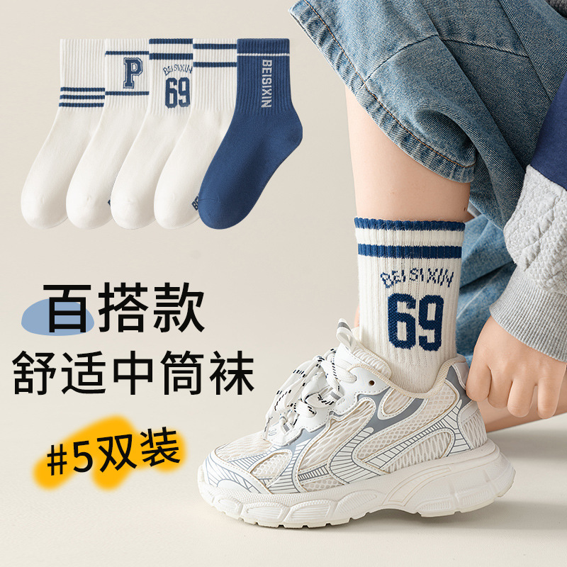 秋の男の子の靴下は子供のスポーツの綿の靴下を卸売りします。