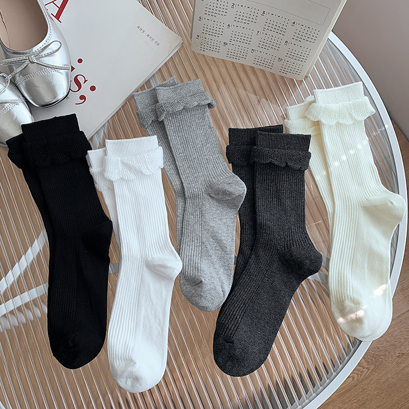Jkロリータレースミドルストッキング女性甘い少女春コットンストッキングins潮学院風かわいい靴下子供黒