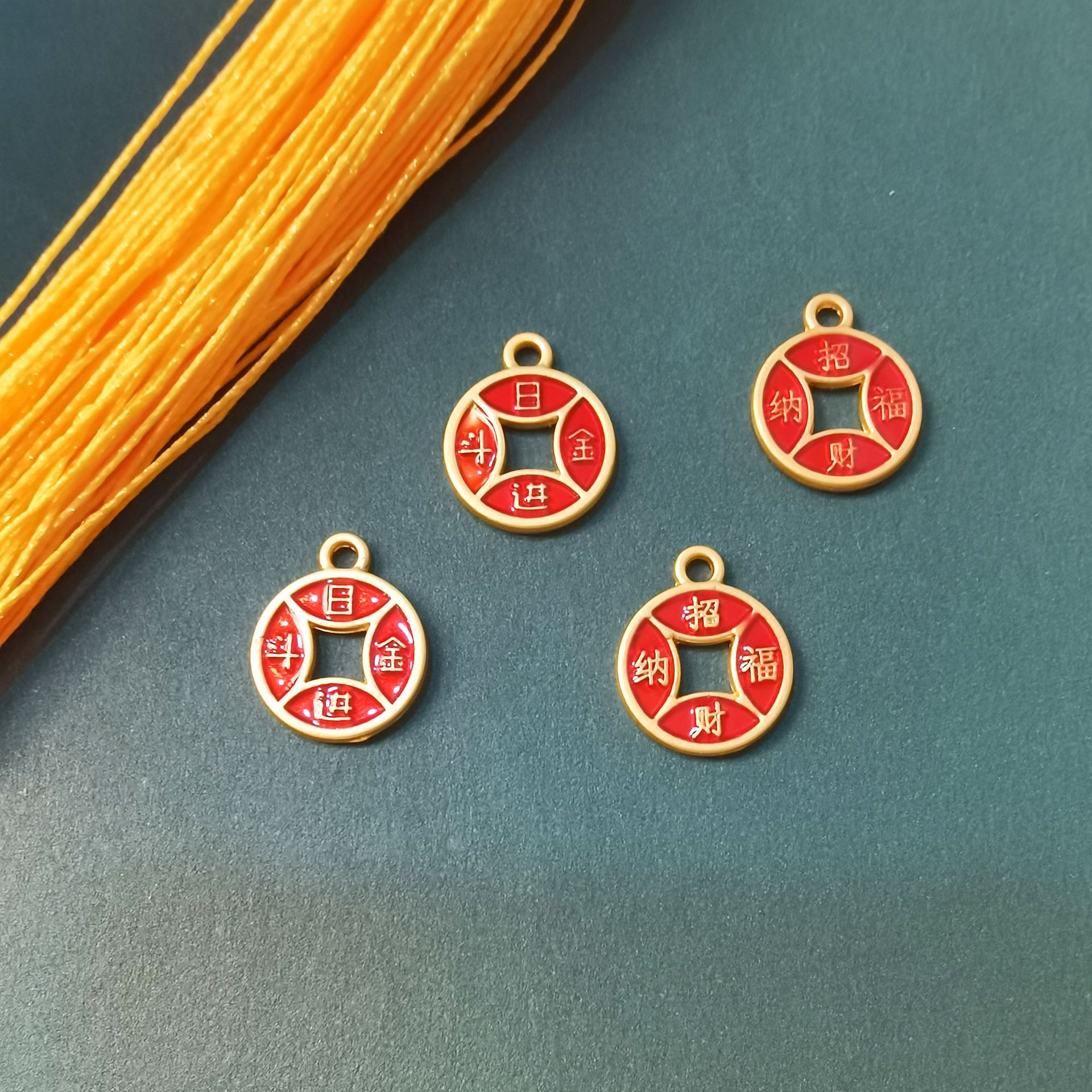 中国風滴油合金吊り牌手飾りブレスレットdiy吉祥日進斗金小吊り牌部品アクセサリーストラップ