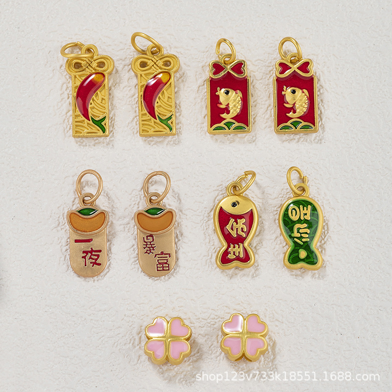 起爆国潮古法金滴油如意そろばん招財運ペンダントdiyネックレスブレスレット手作りひもストラップ