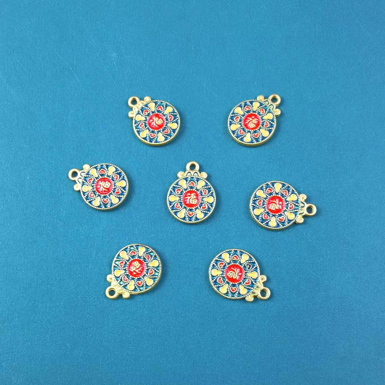 保色沙金古法金メッキ合金部品三色両面福diy編みペンダントアクセサリー卸売り