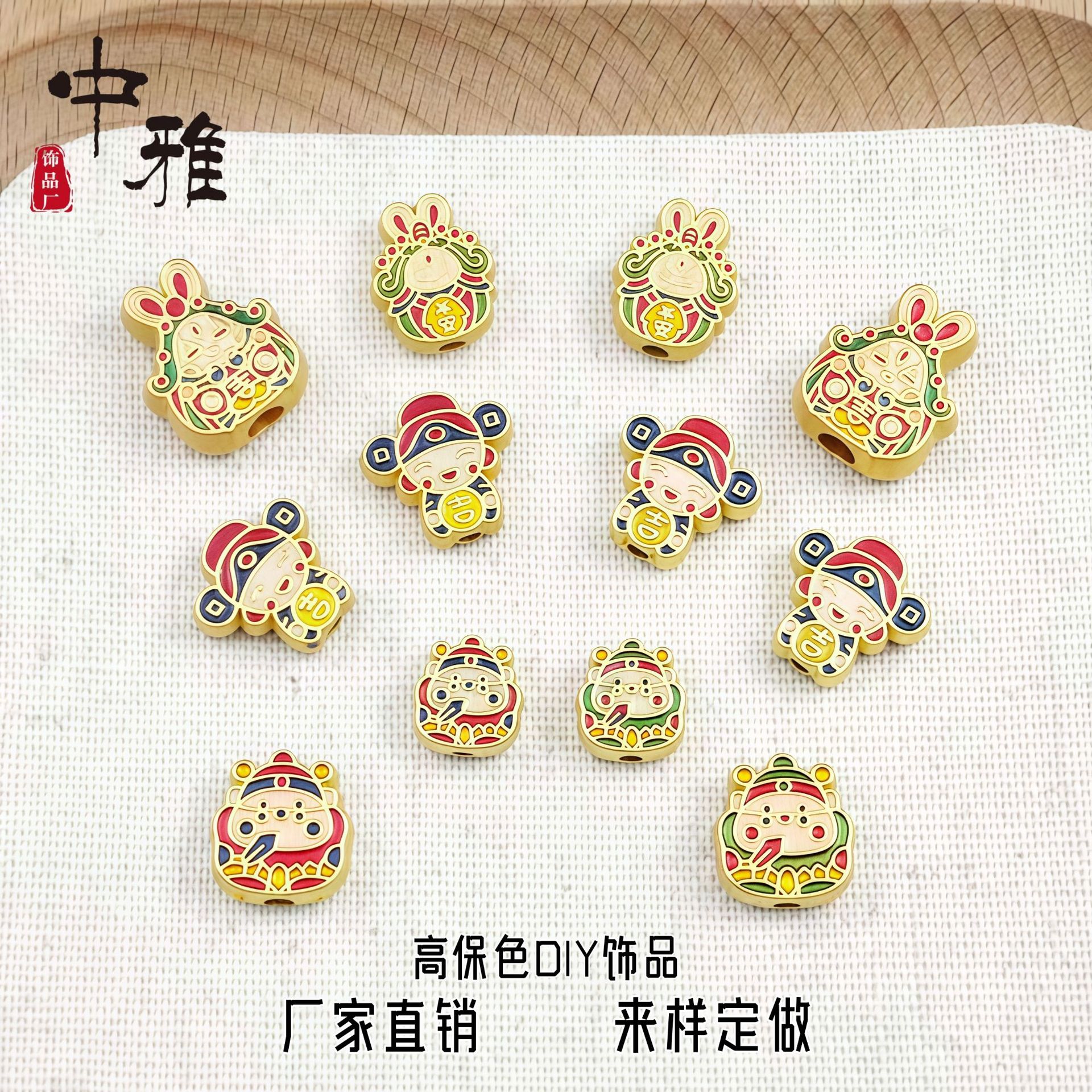 沙金上下通孔財神DIY兎爺ペンダント国潮古法沙金覚醒獅子通孔数珠吉祥アクセサリー