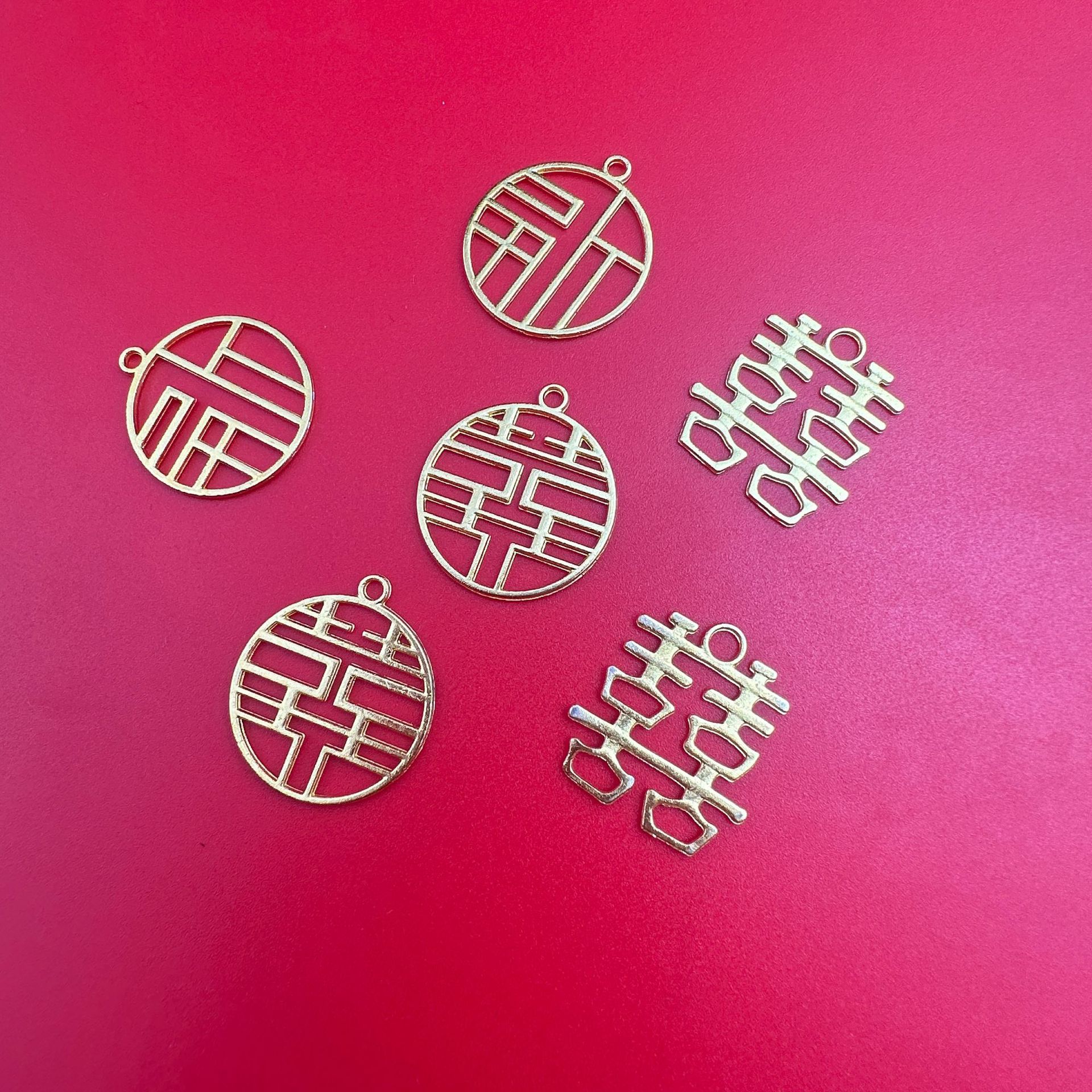 合金円形喜字ペンダントdiy古風新婦頭飾り団扇流蘇喜糖箱喜字ペンダント部品バッチ