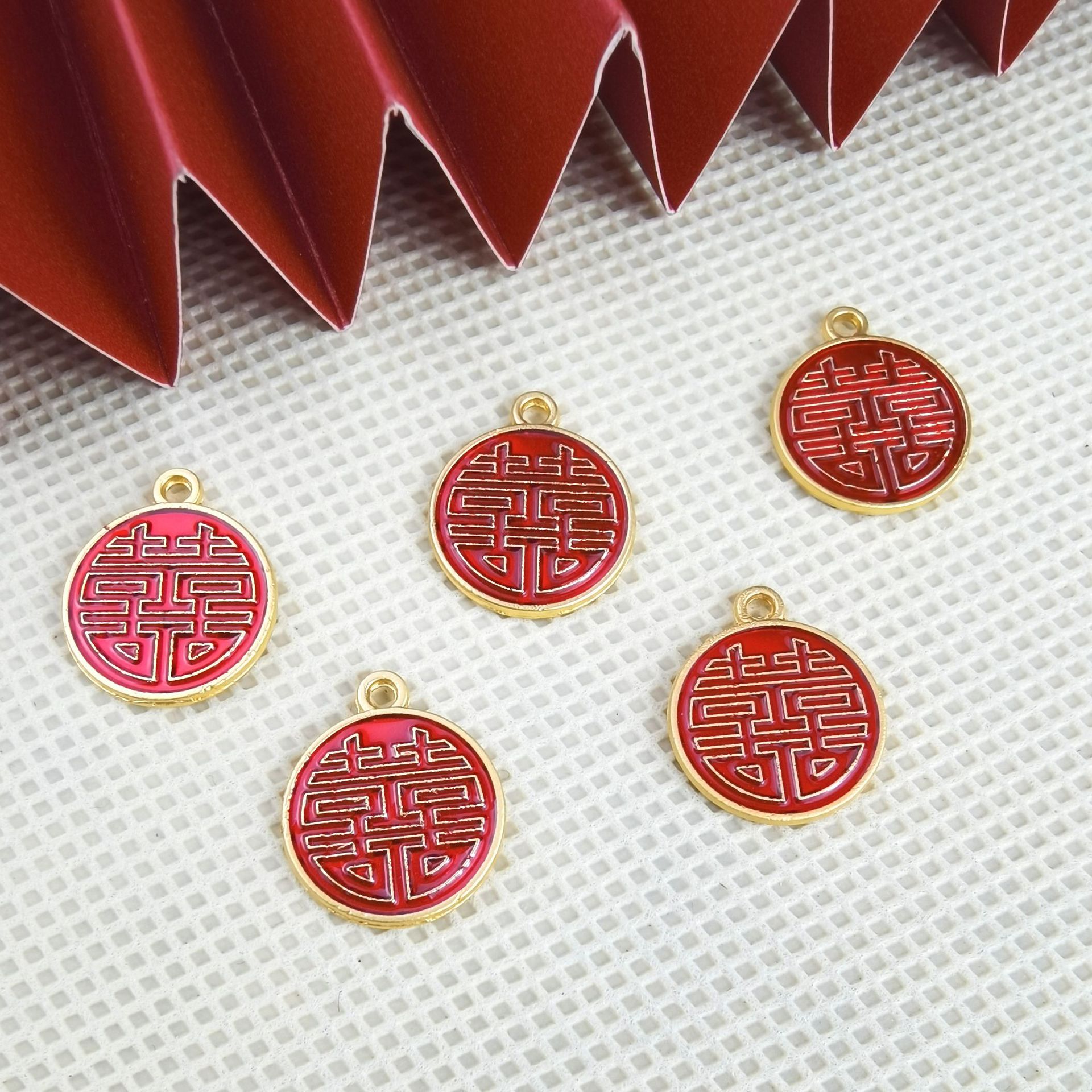 金属の喜字の部品の亜鉛合金の喜のペンダントの結婚祝いの双喜のペンダントのdiyのアクセサリーの手作りの編み物のメーカーは直接供給します。