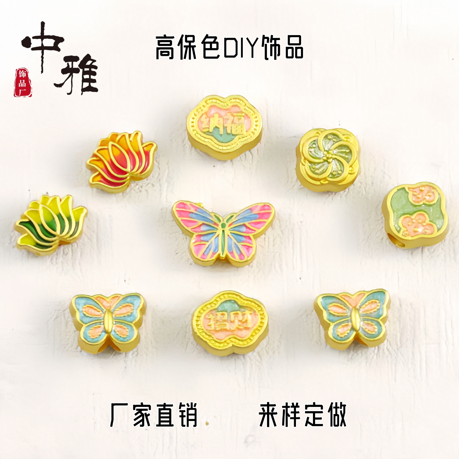 古代サンドゴールドエナメル蝶アクセサリー椿ジュエリーオイル電気メッキ手作り diy ブレスレットネックレスビーズ