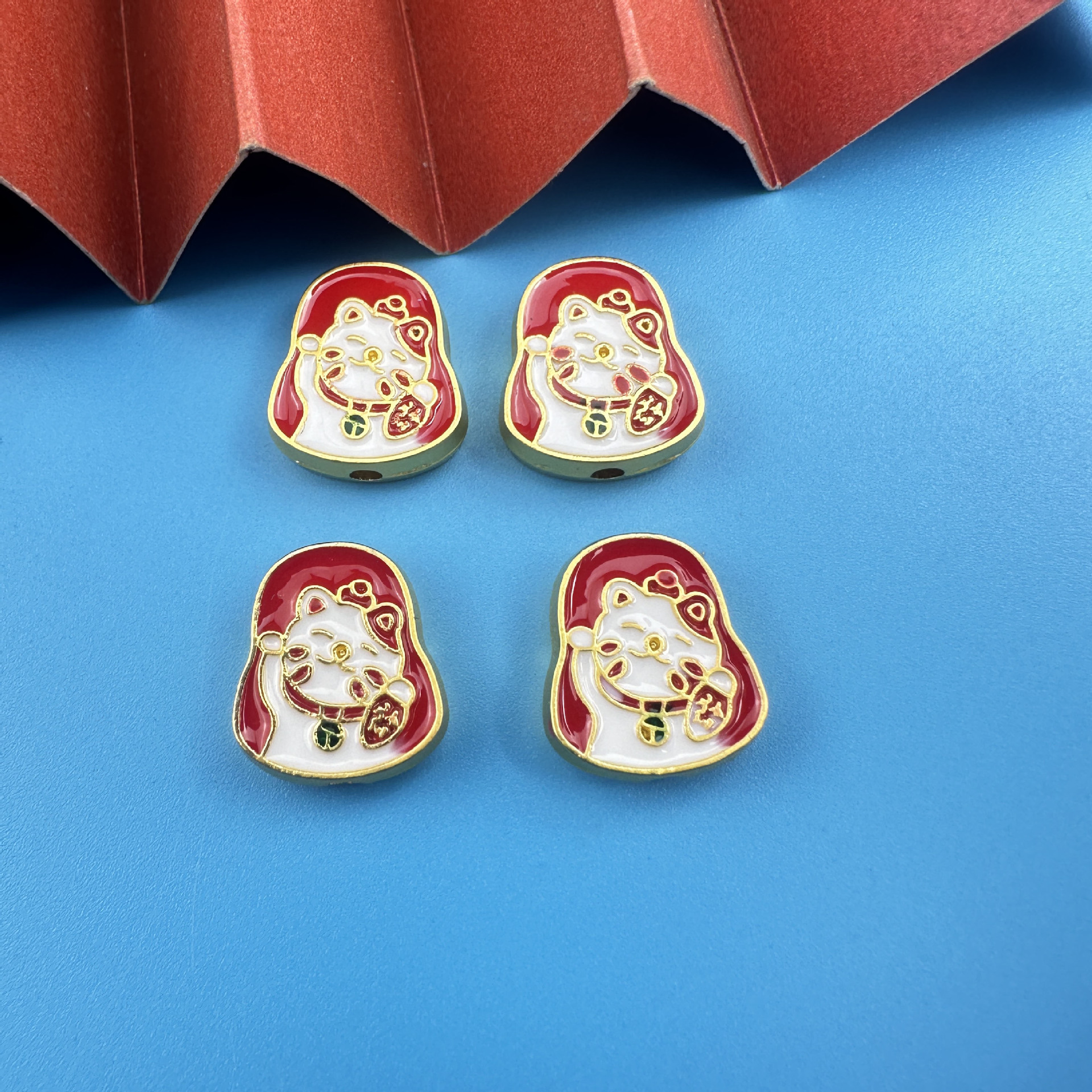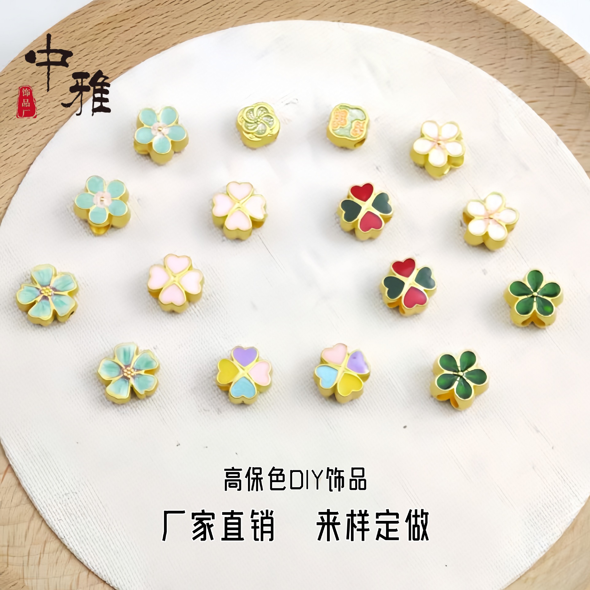 保色ダンカンの油輸送招き猫千万両国潮焼藍小花隔珠diy沙金アクセサリー部品