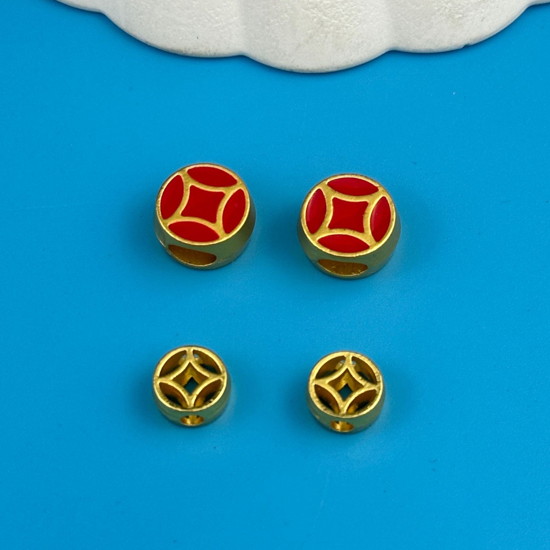 高保色古法隔珠透かし小銅銭扁珠手作りDIYビーズブレスレットネックレスコイン散珠部品