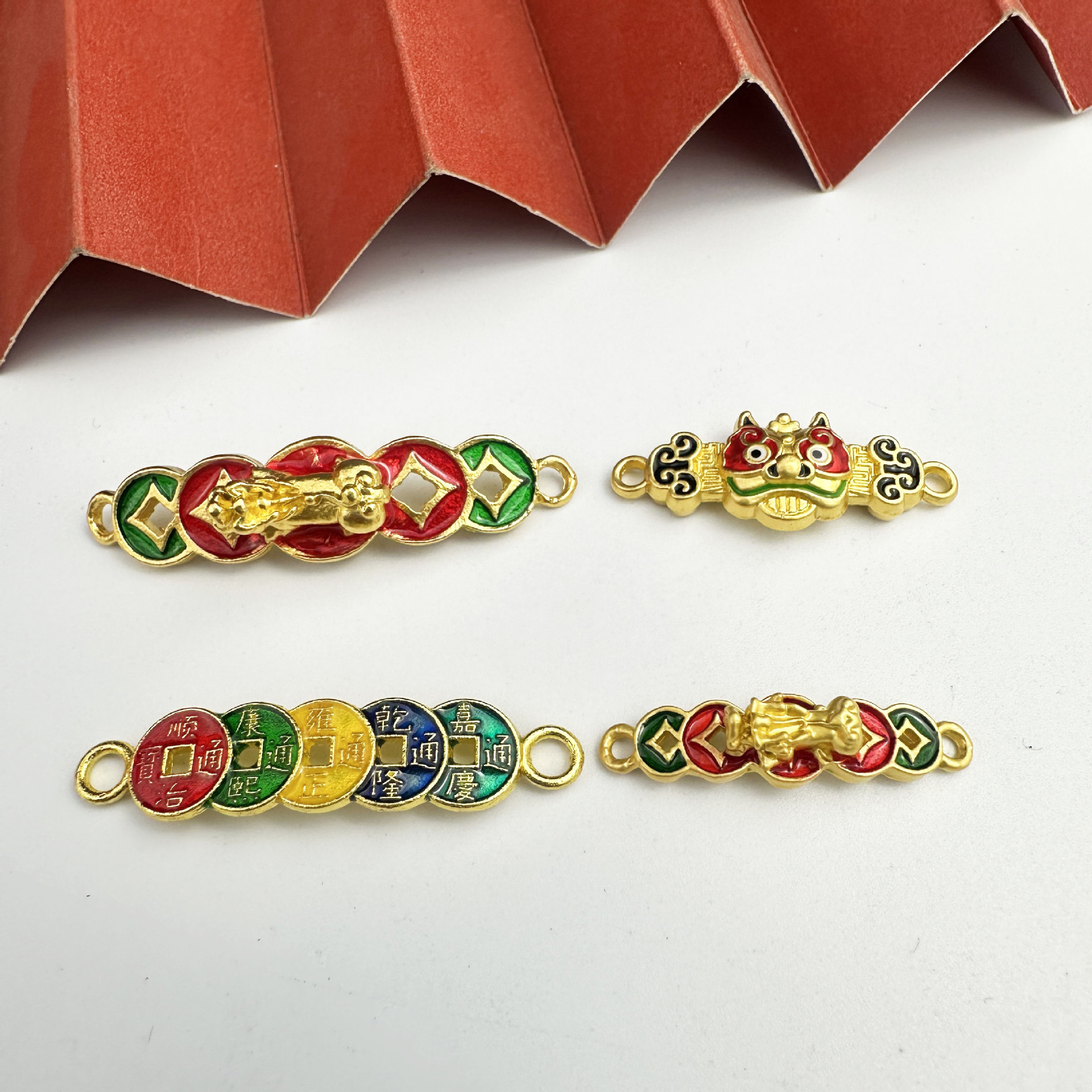 ダントツ両耳五帝銭半腕輪双吊招財入宝ブレスレット貨幣招財手串diy配