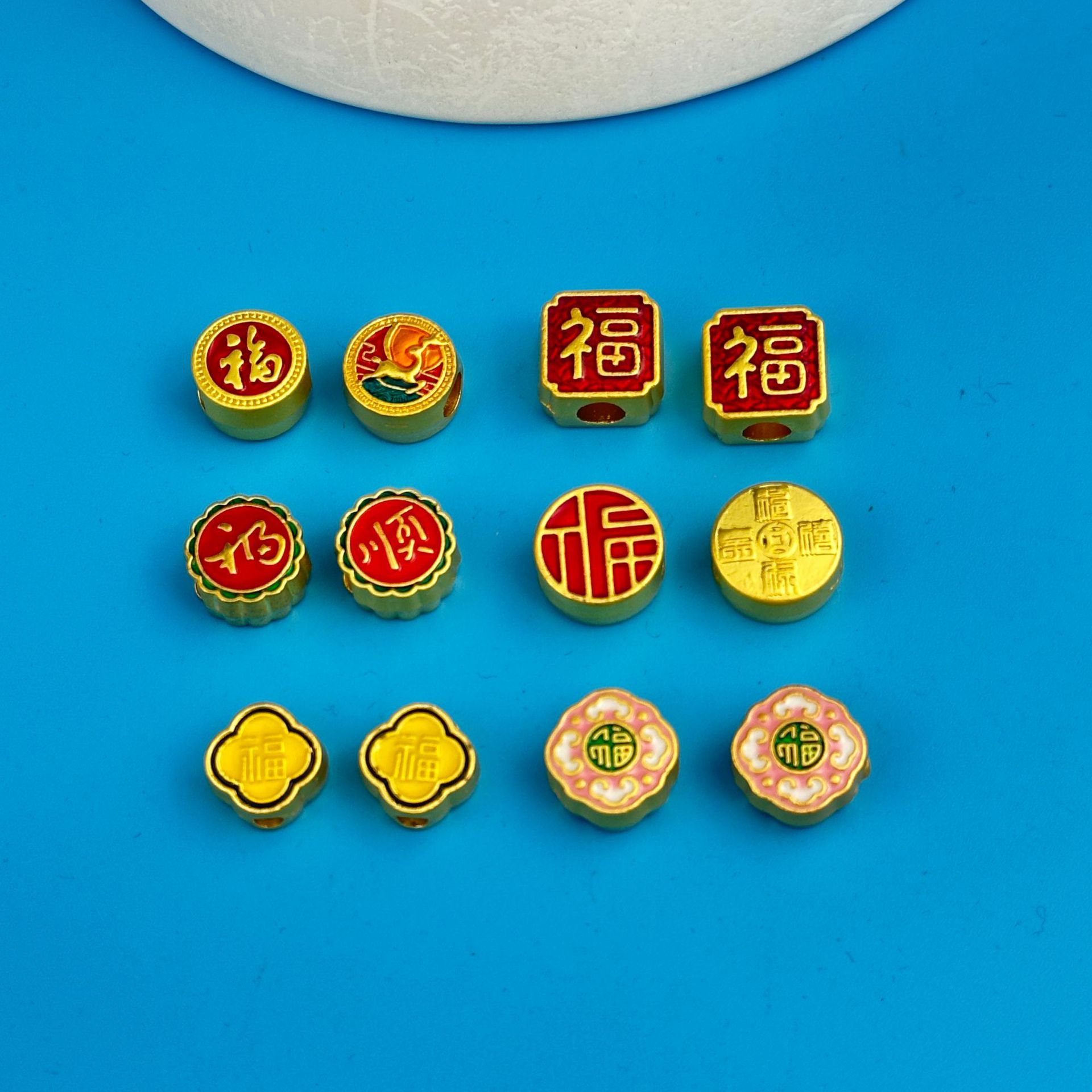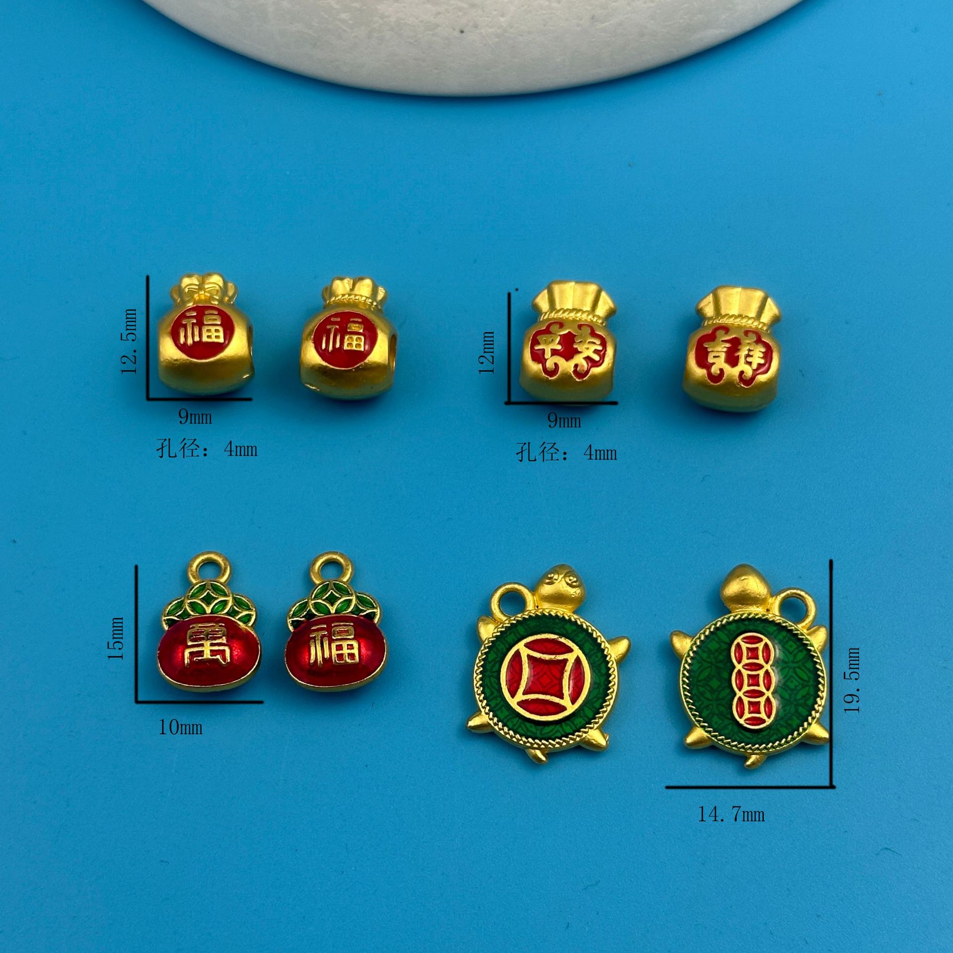 古法沙金中国風福字福袋隔珠平安吉祥字ペンダントネックレスdiyアクセサリー部品