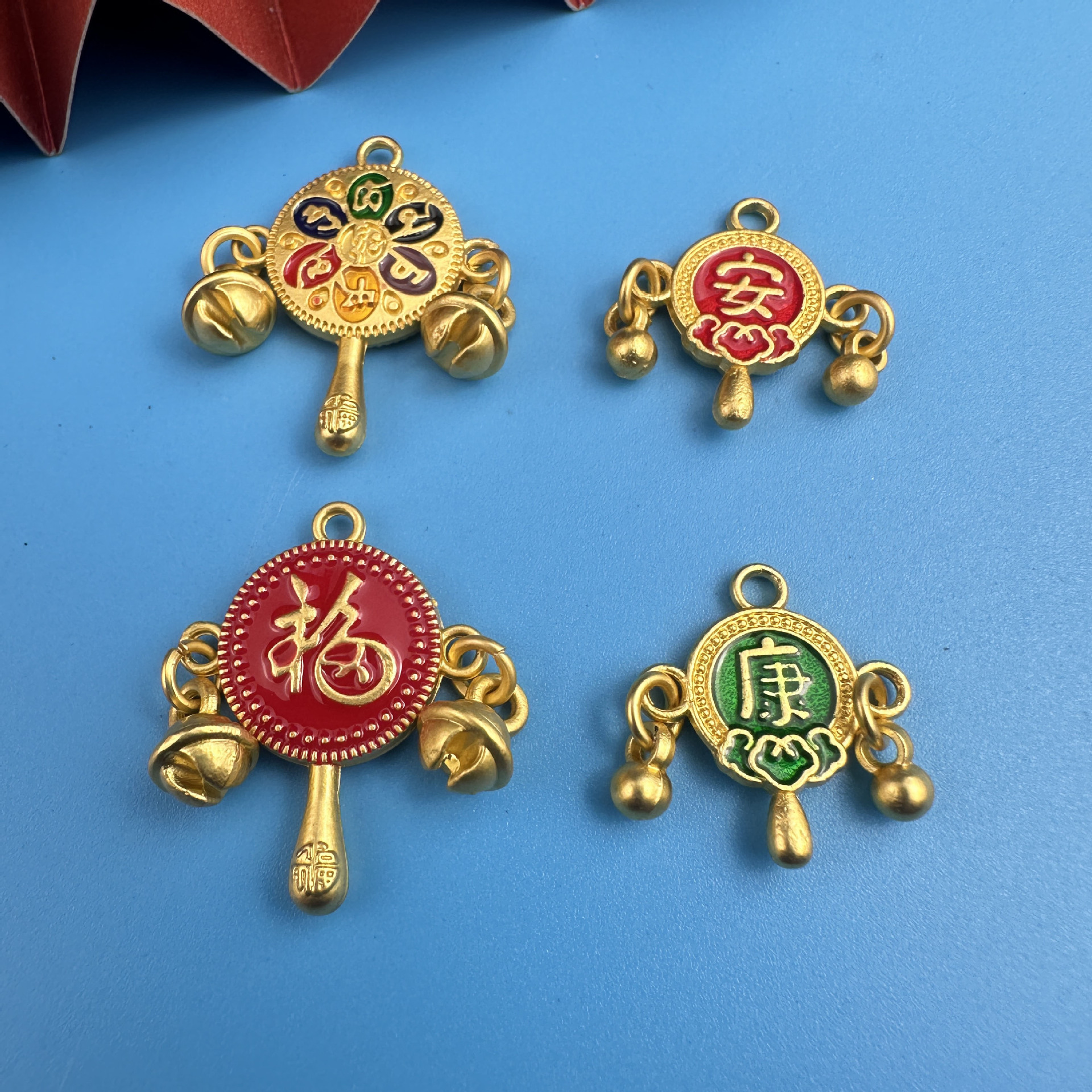 古法沙金滴油打浪鼓輸送福字六字真言ペンダント安康打浪鼓チェーンロープdiy掛け
