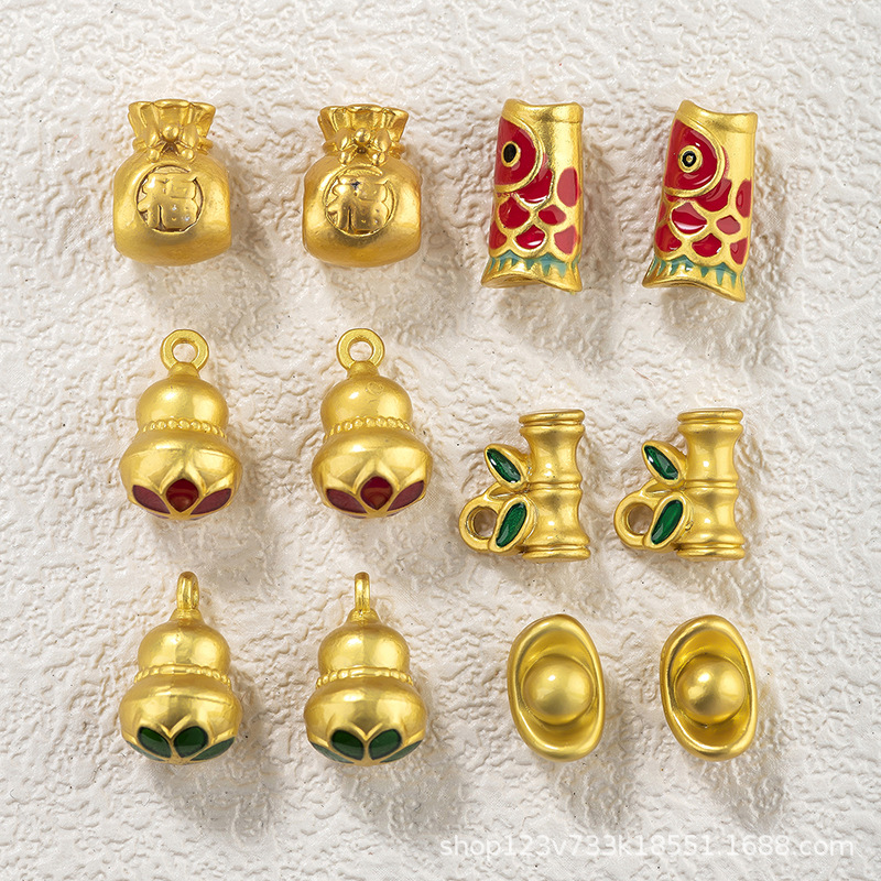 合金金メッキビーズdiyアクセサリー通孔園福ビーズブレスレット平安吉祥銭袋ビーズアクセサリー