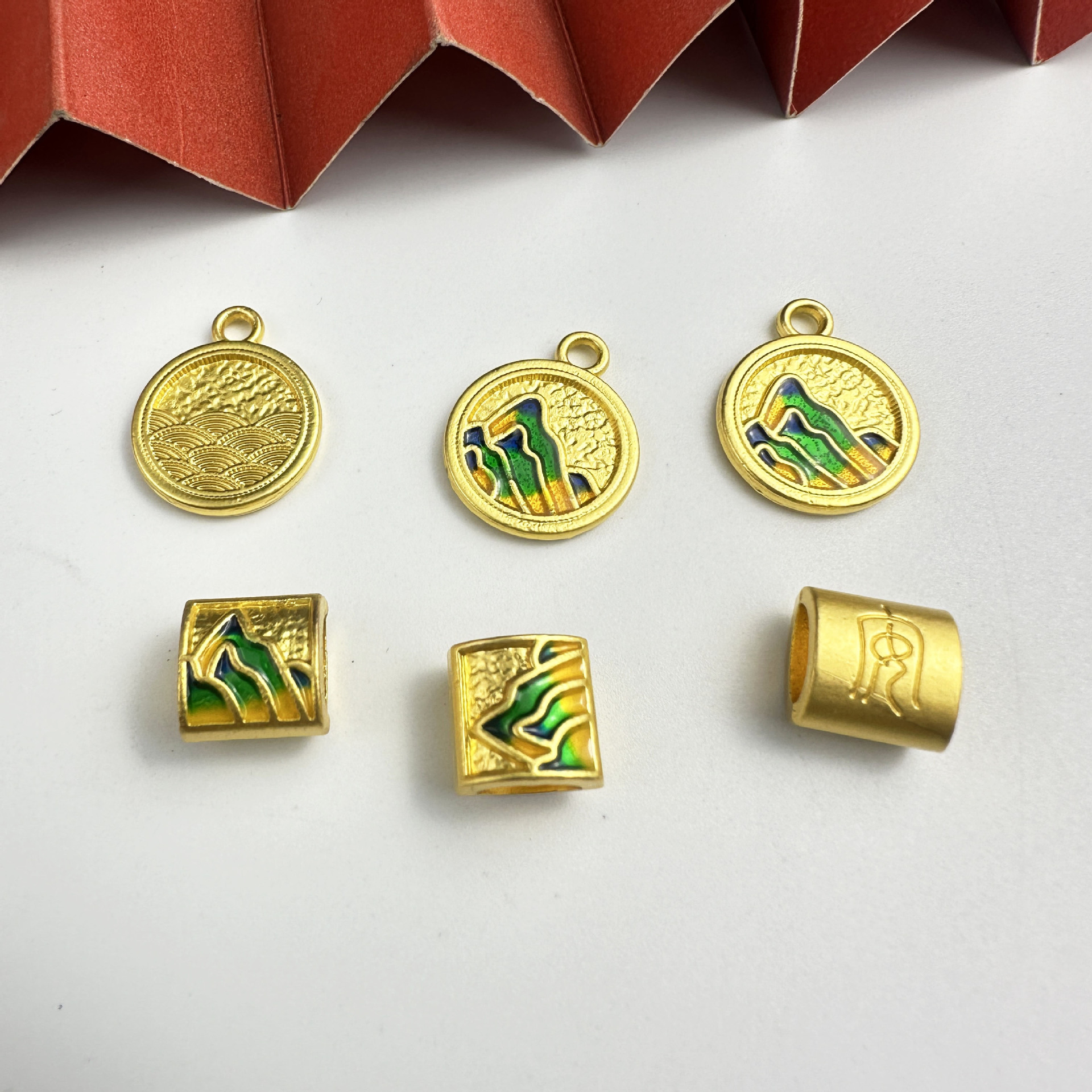 金店同モデルの古法金千里江山図はこの青緑ネックレスペンダントDIY手串隔珠アクセサリー部品だけです。