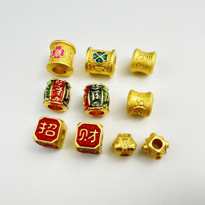 古法金保色福字大穴桶珠六字真言隔珠大穴珠服飾チャイナドレスアクセサリー部品