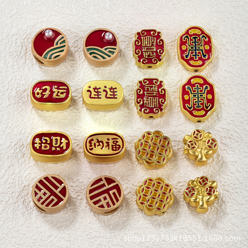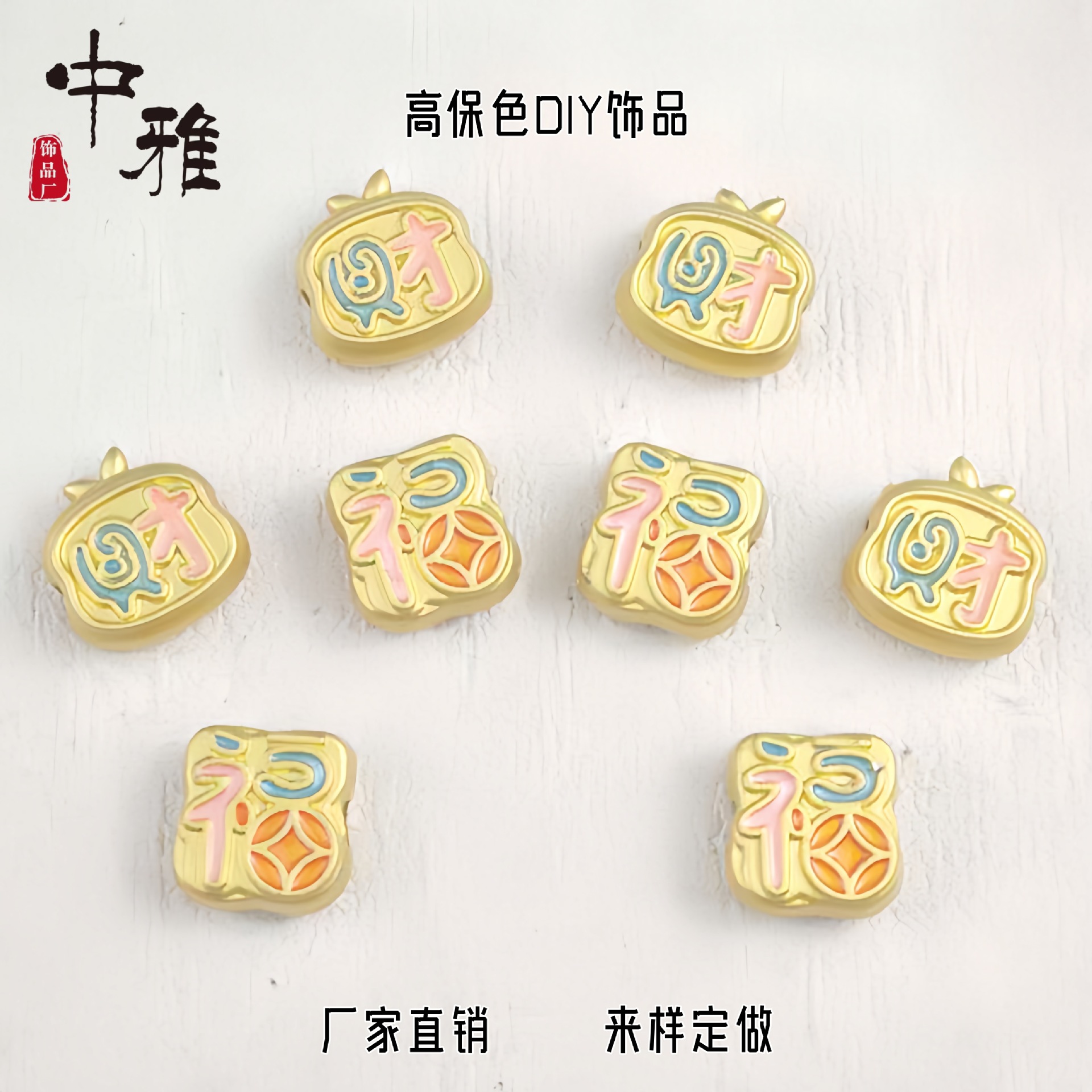 中国風新型沙金滴油片面福/福禄寿喜diy部品ブレスレットアクセサリー卸売り