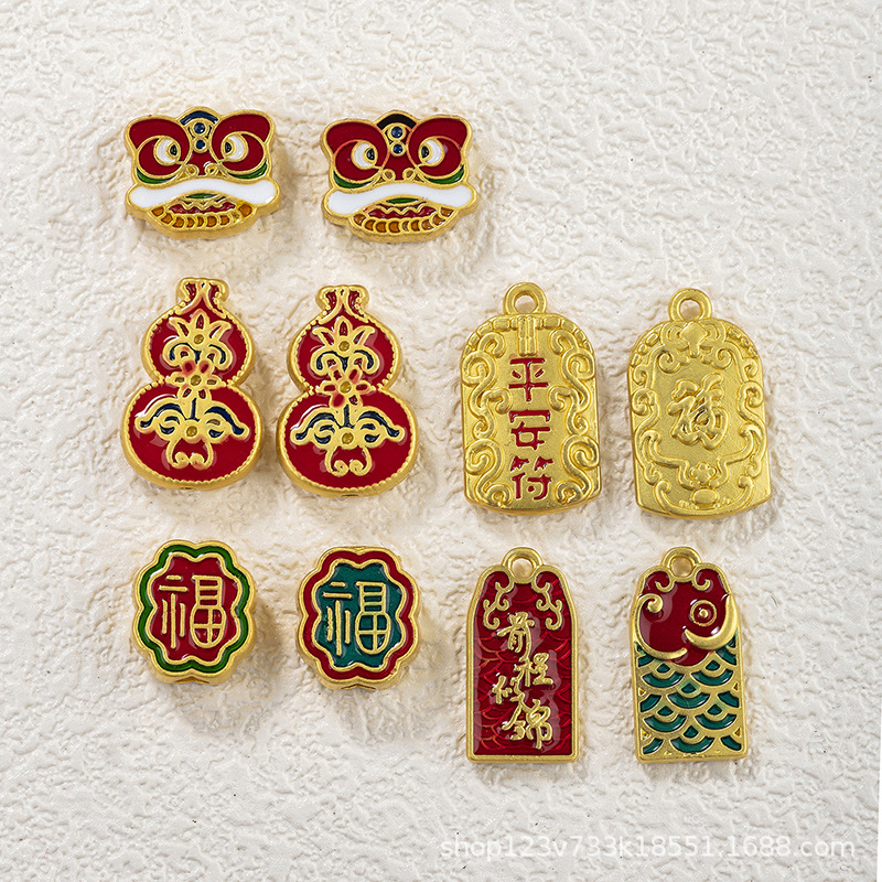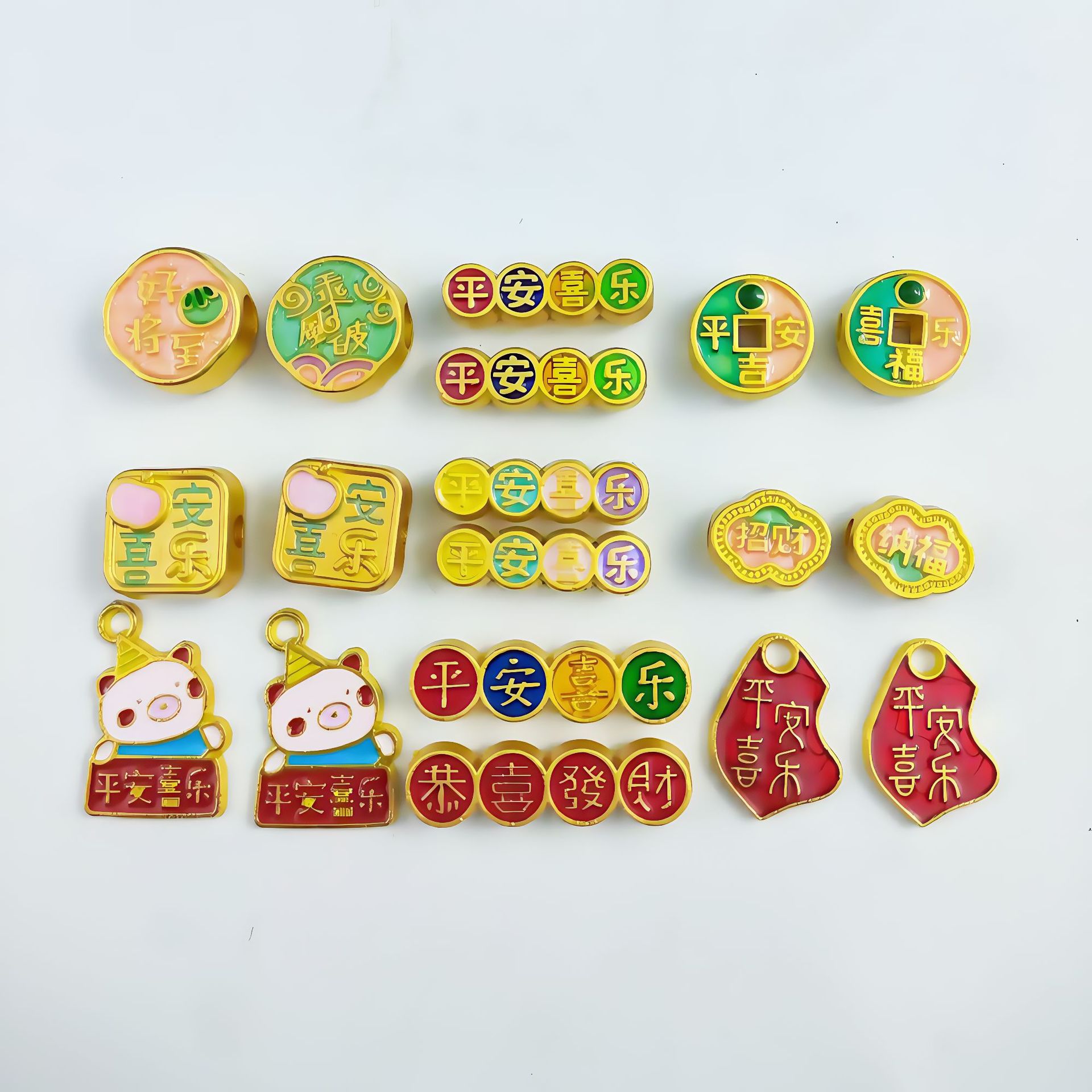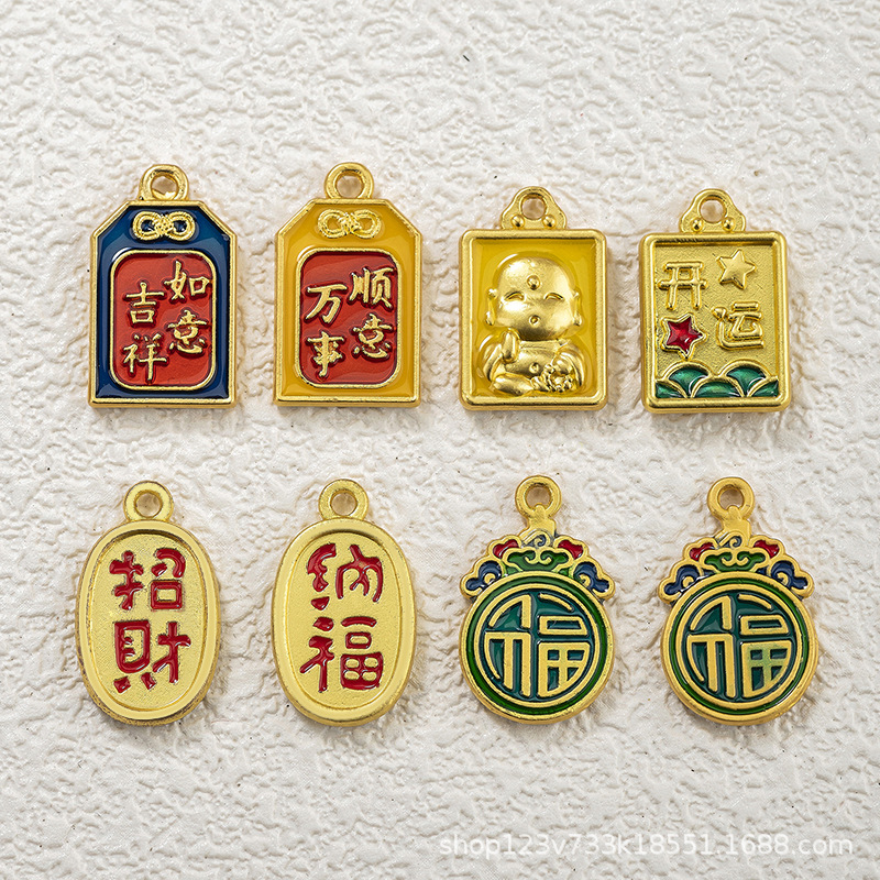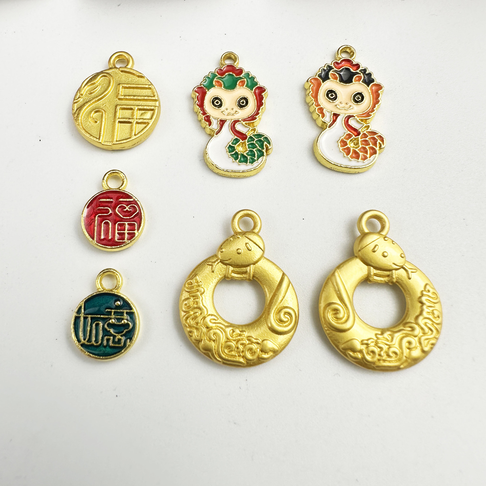 合金滴油ペンダント保色diyペンダント2025年蛇年福字開運招財平安如意部品