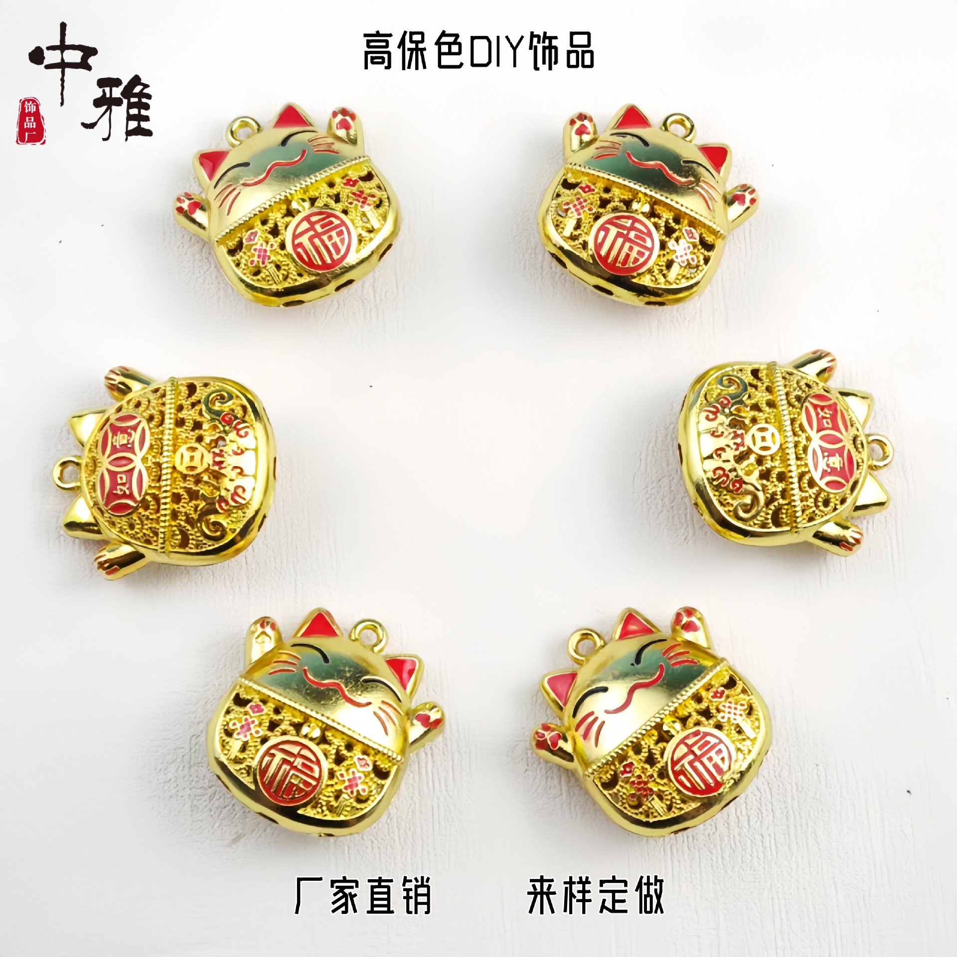 DIY ダマスクゴールド猫ペンダント招き猫チャームネックレスセーターチェーンバッグペンダント diy キーホルダーアクセサリーアクセサリー