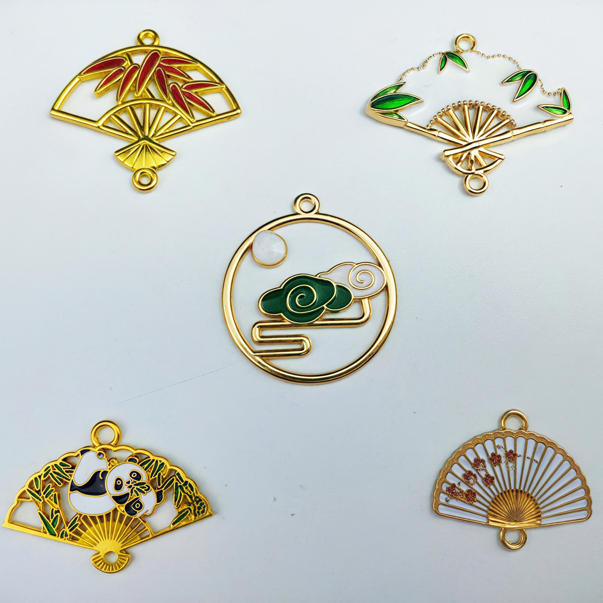 合金滴油中国風円形真珠祥雲仙鶴diyアクセサリー車載耳飾りキーホルダー部品卸売り