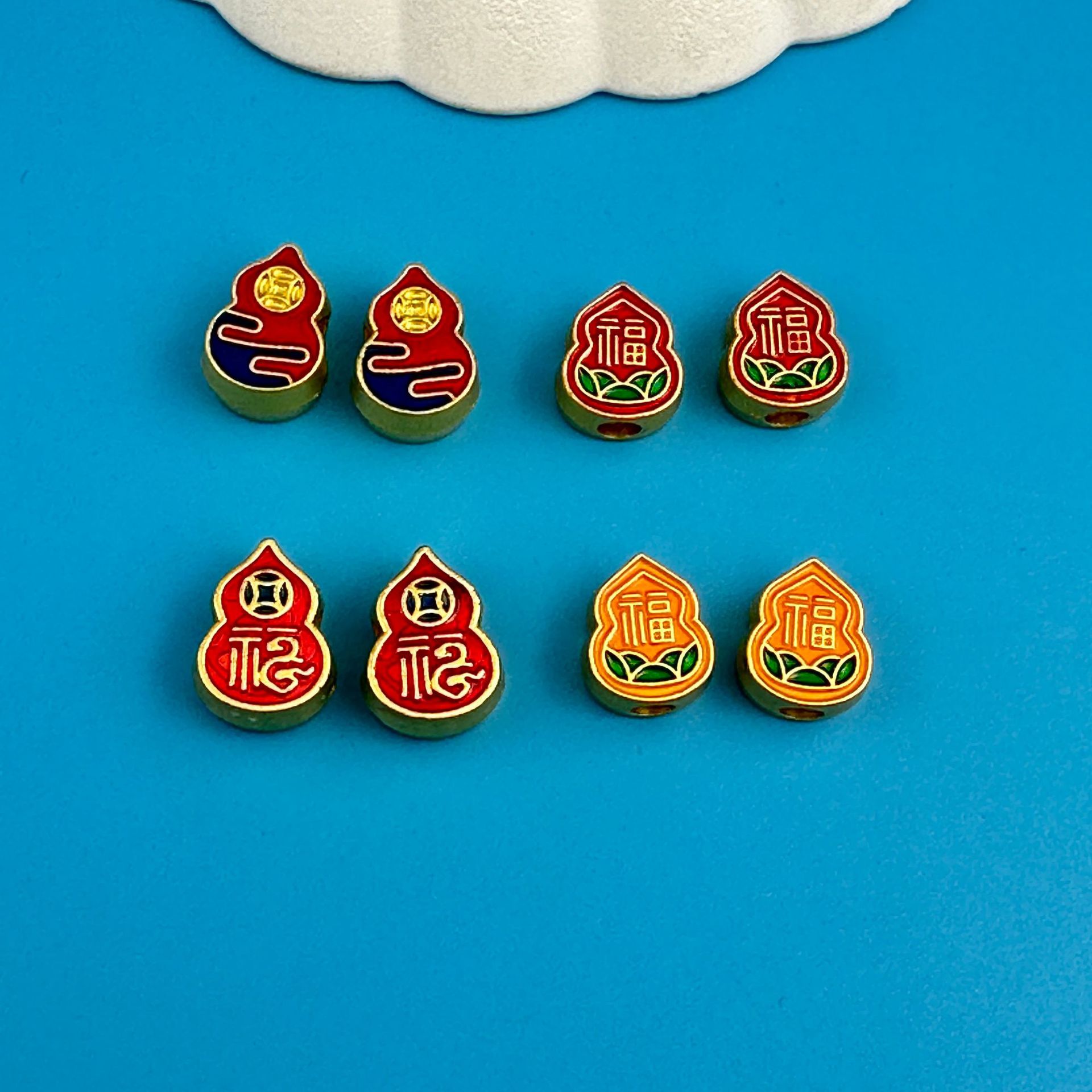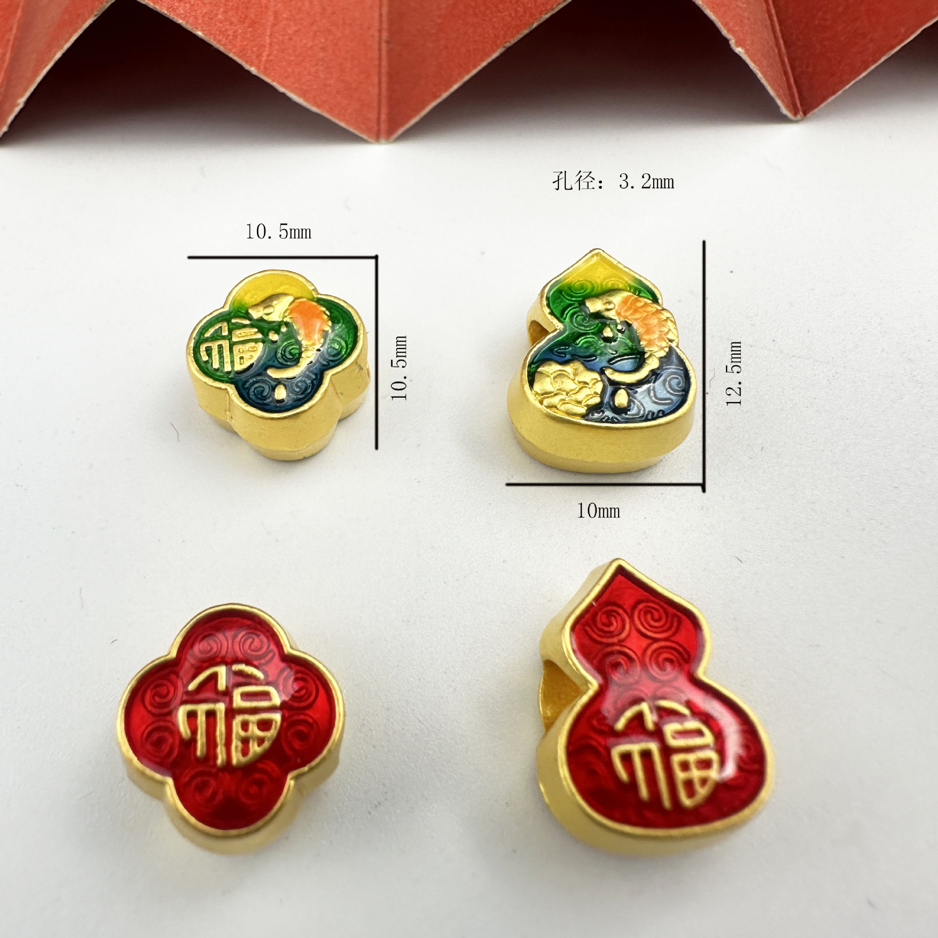 Diy古法金強保色沙金祥雲部品寿桃瓢箪福禄ブレスレットペンダント銅銭瓢箪ビーズ