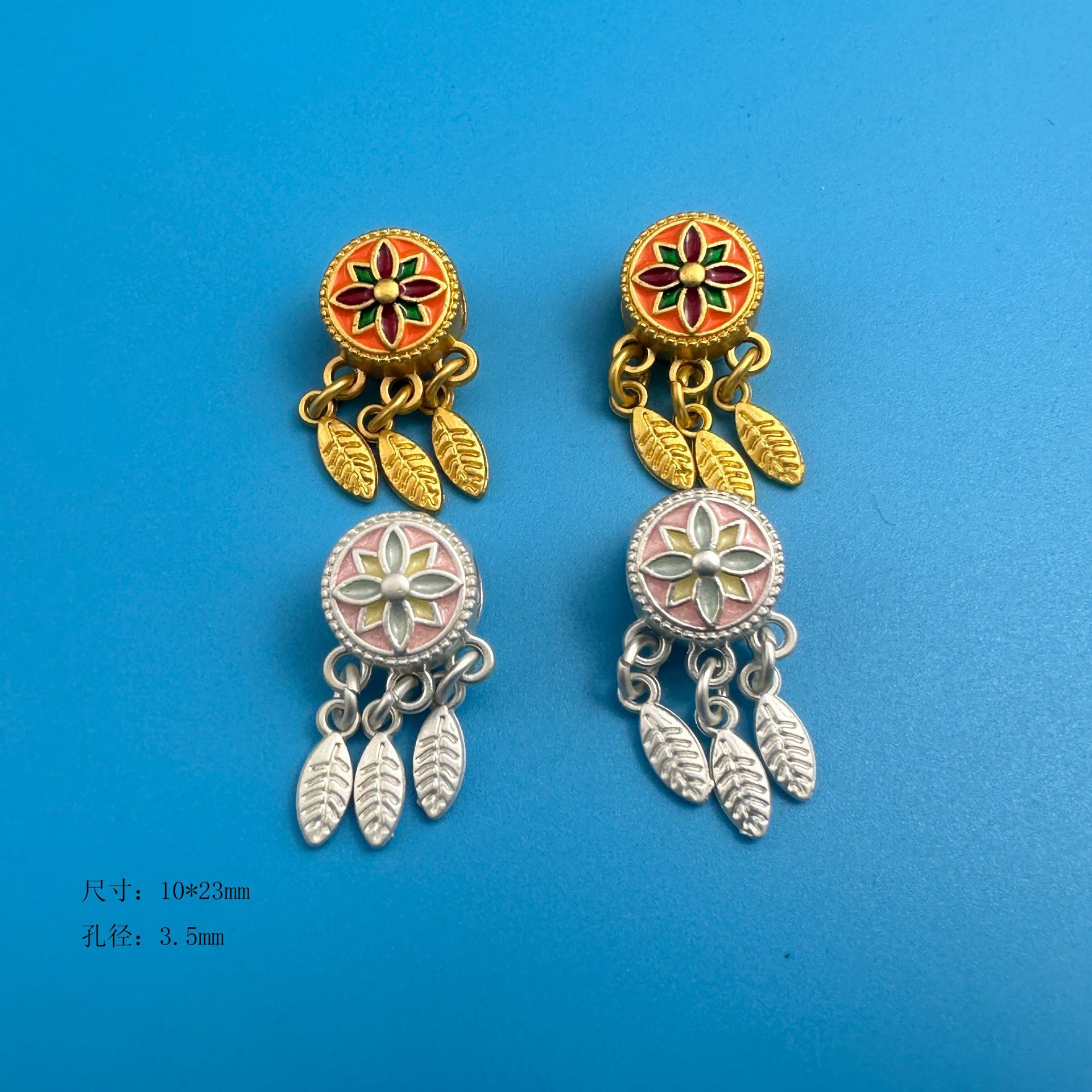 Diy保色合金滴油古風双吊扇子流蘇イヤリングペンダント国潮風中国風扇子ペンダント