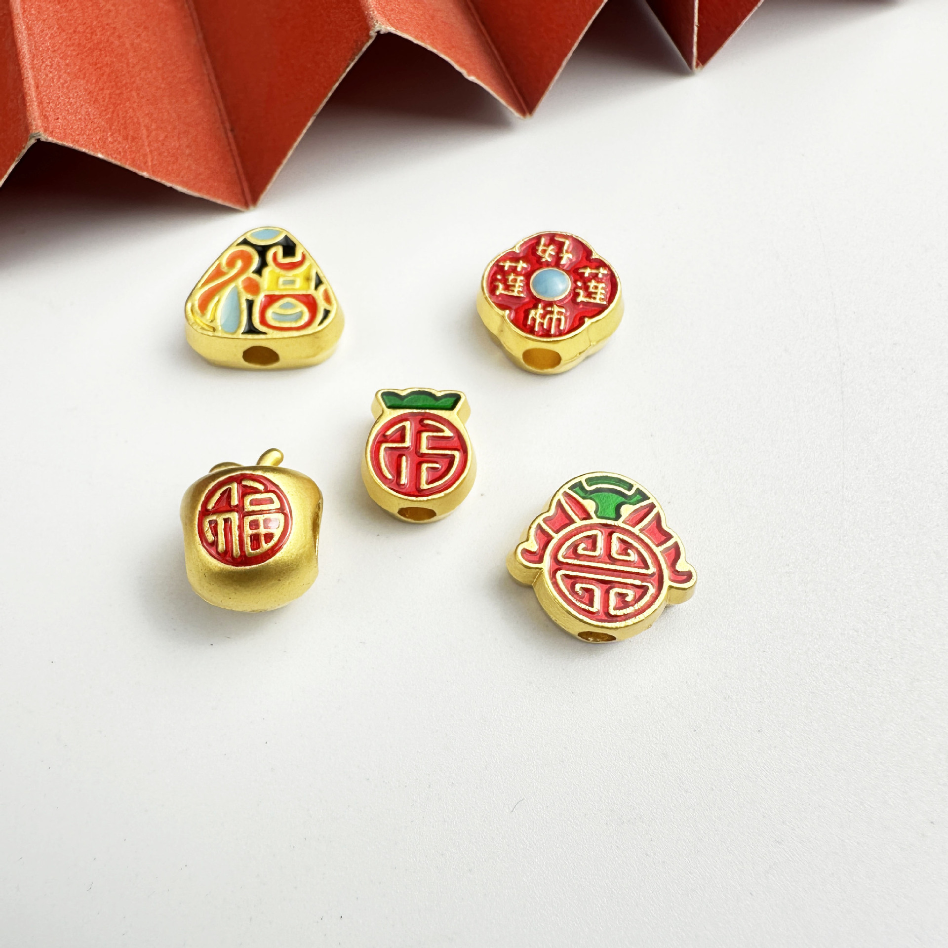 古法金小ペンダントブレスレットdiyアクセサリー吉祥箒箕手串隔珠ペンダント部品卸売り